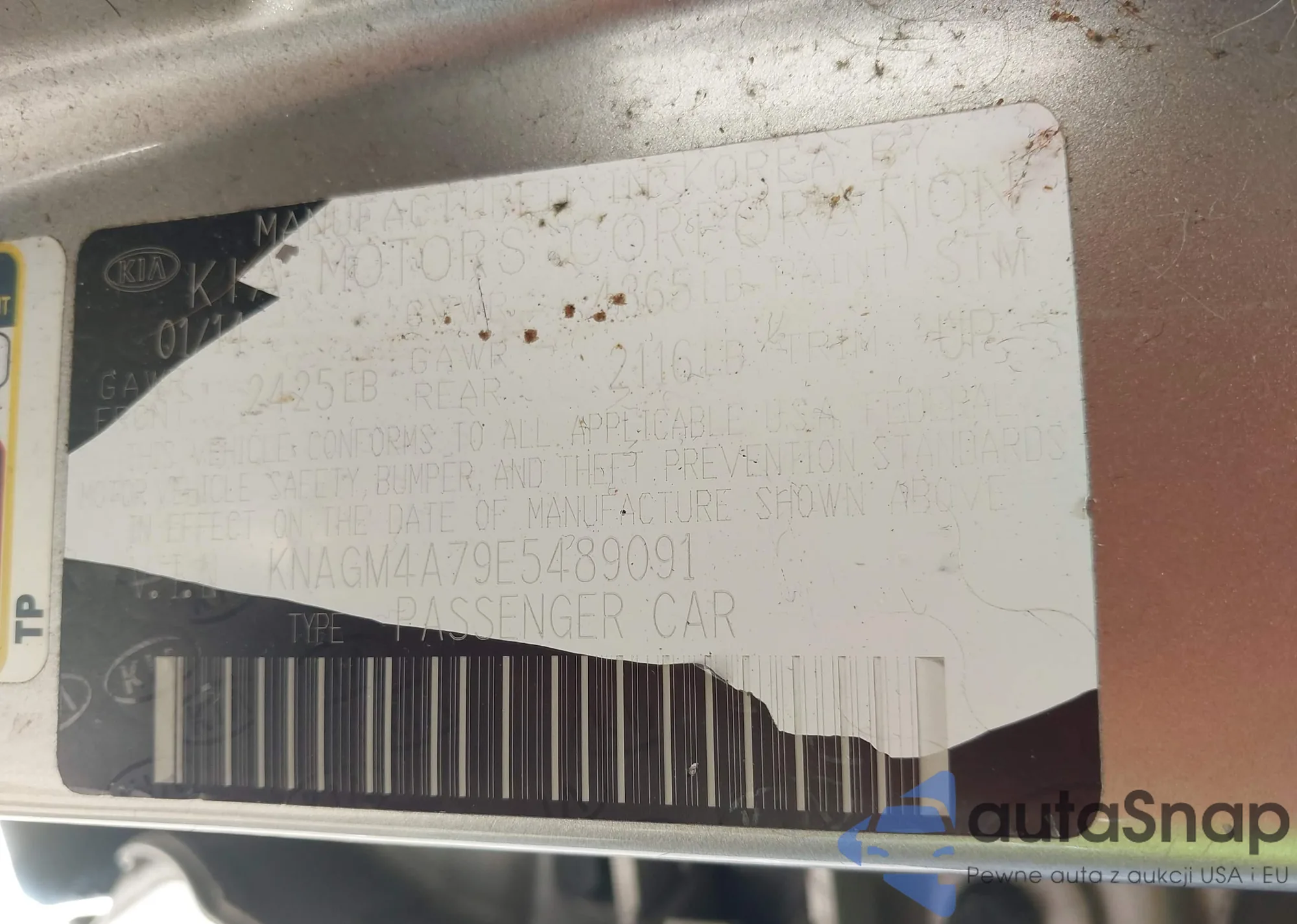 LOT: 42216291 VIN: 5NPEB4AC2BH262298