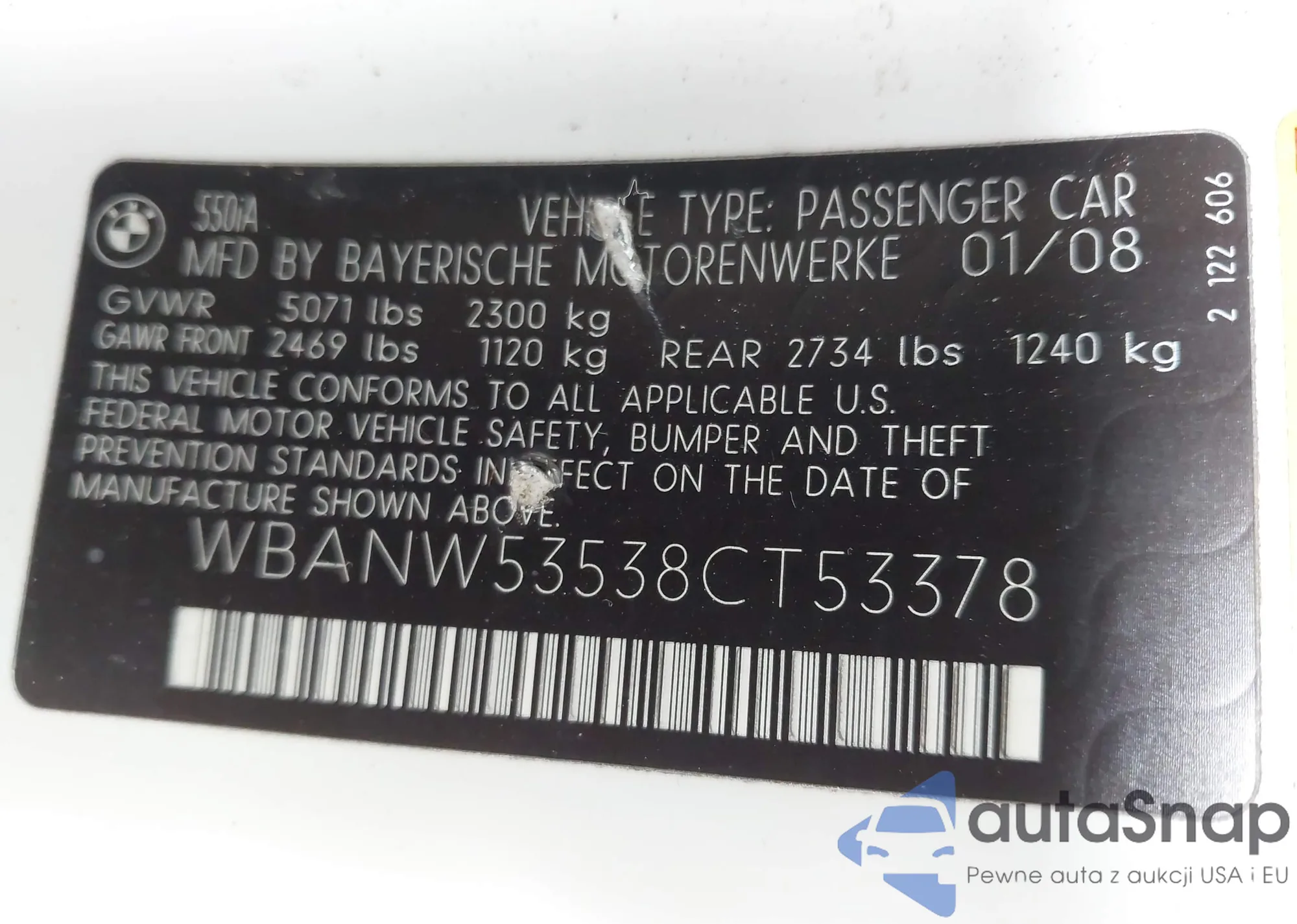 LOT: 42333900 VIN: WBAPH7C56BE680769
