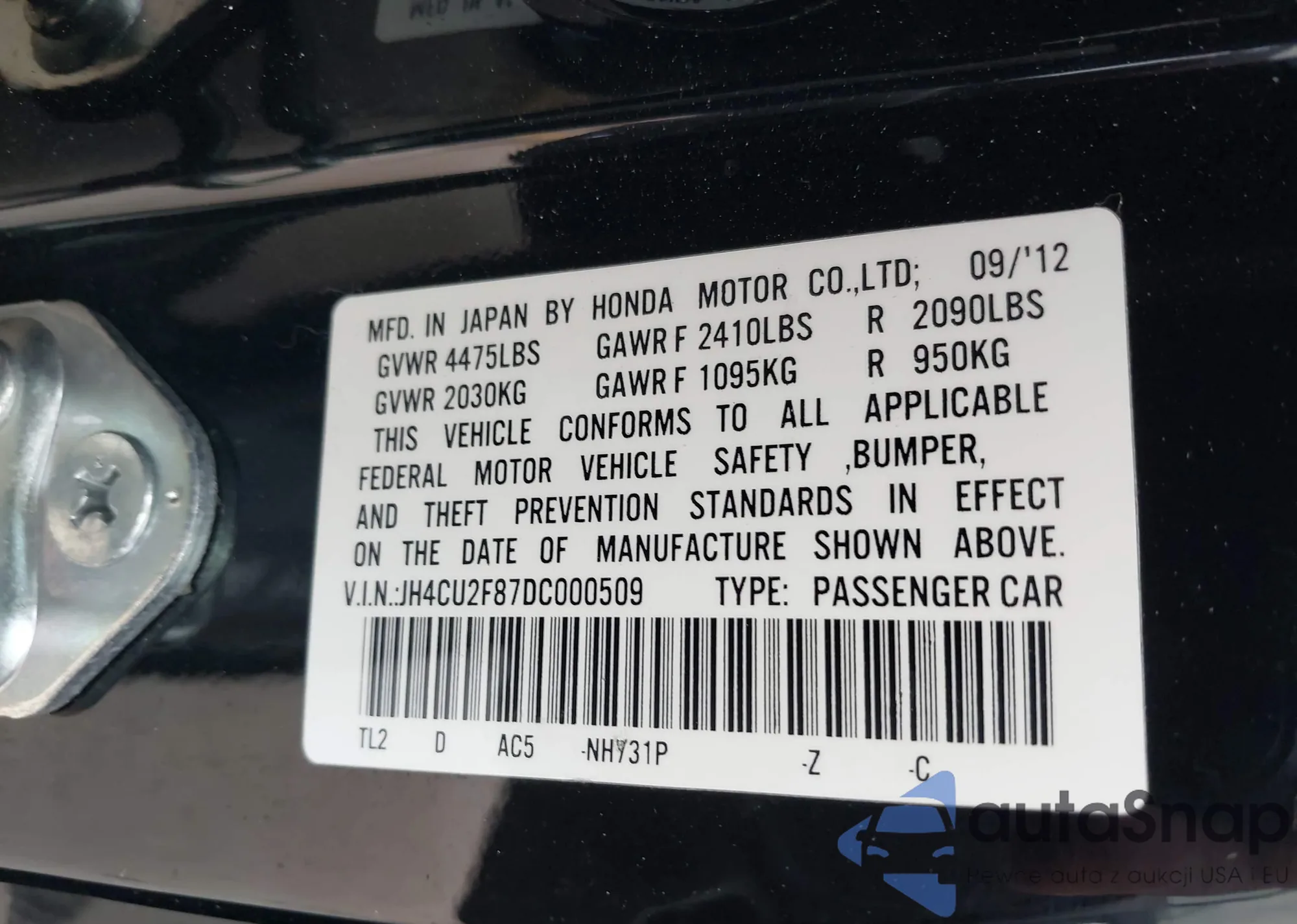 • VIN JH4CU2F87DC000509