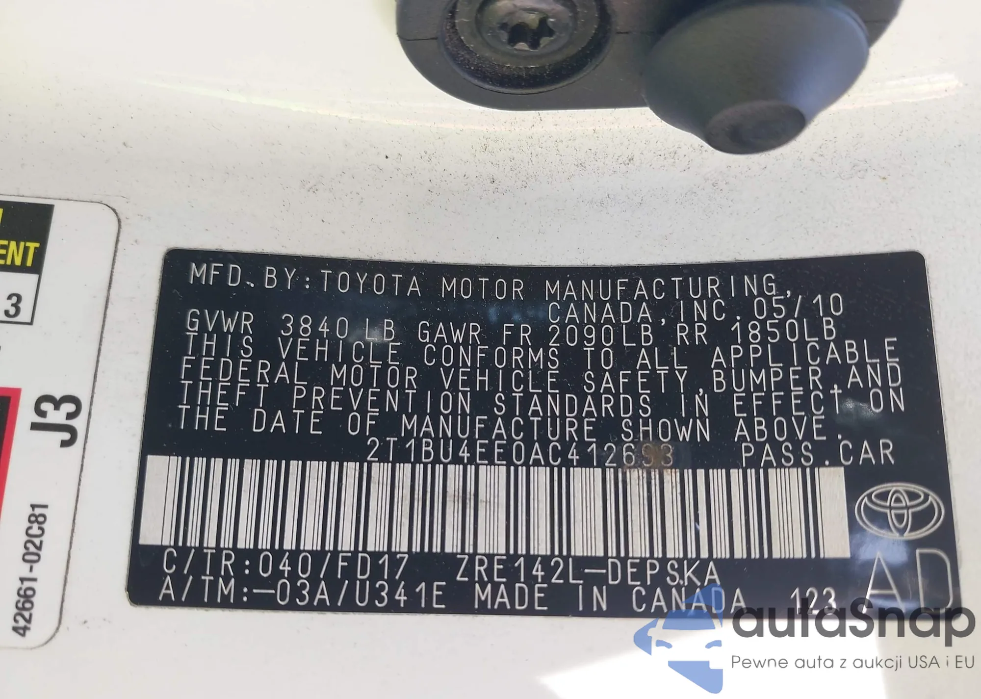 • VIN 2T1BU4EE0AC412693