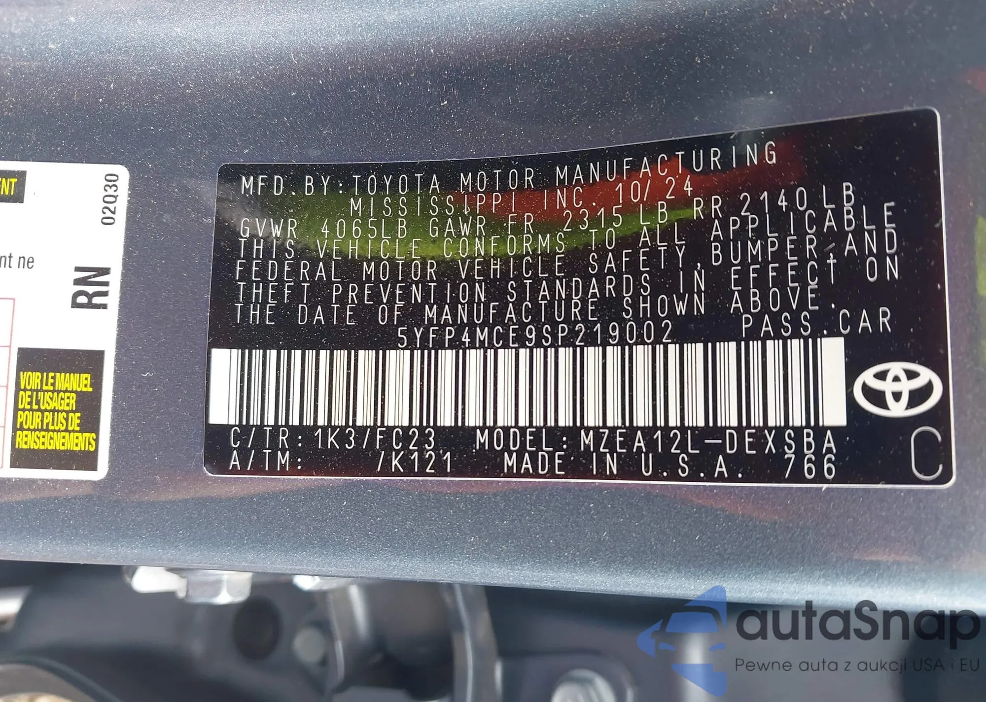 LOT: 42304173 VIN: JTDKB20U477616450