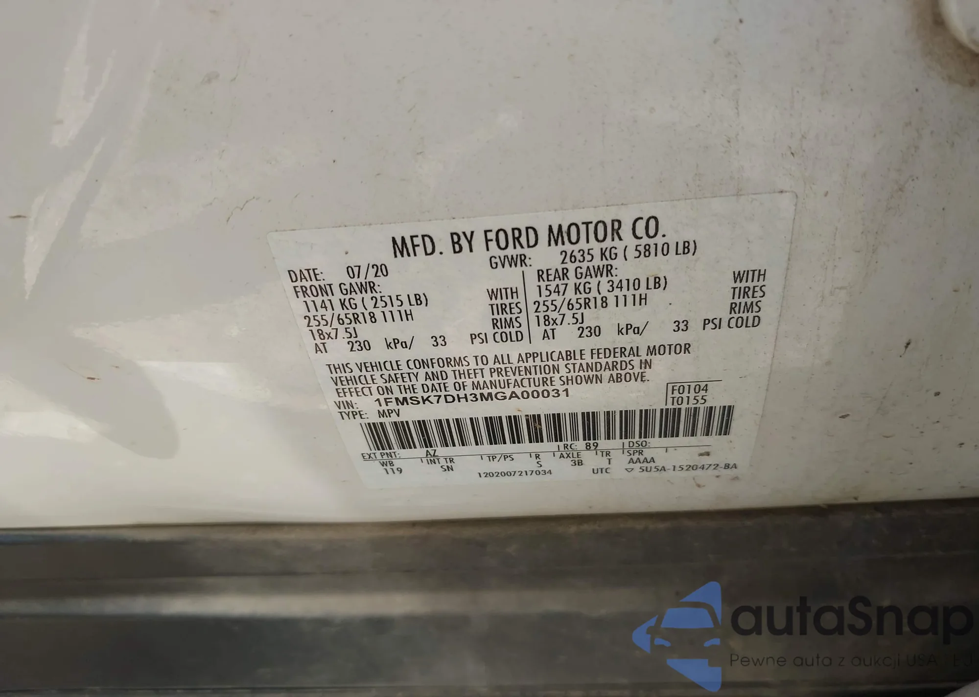 LOT: 42239335 VIN: 5J6TF2H52AL013690