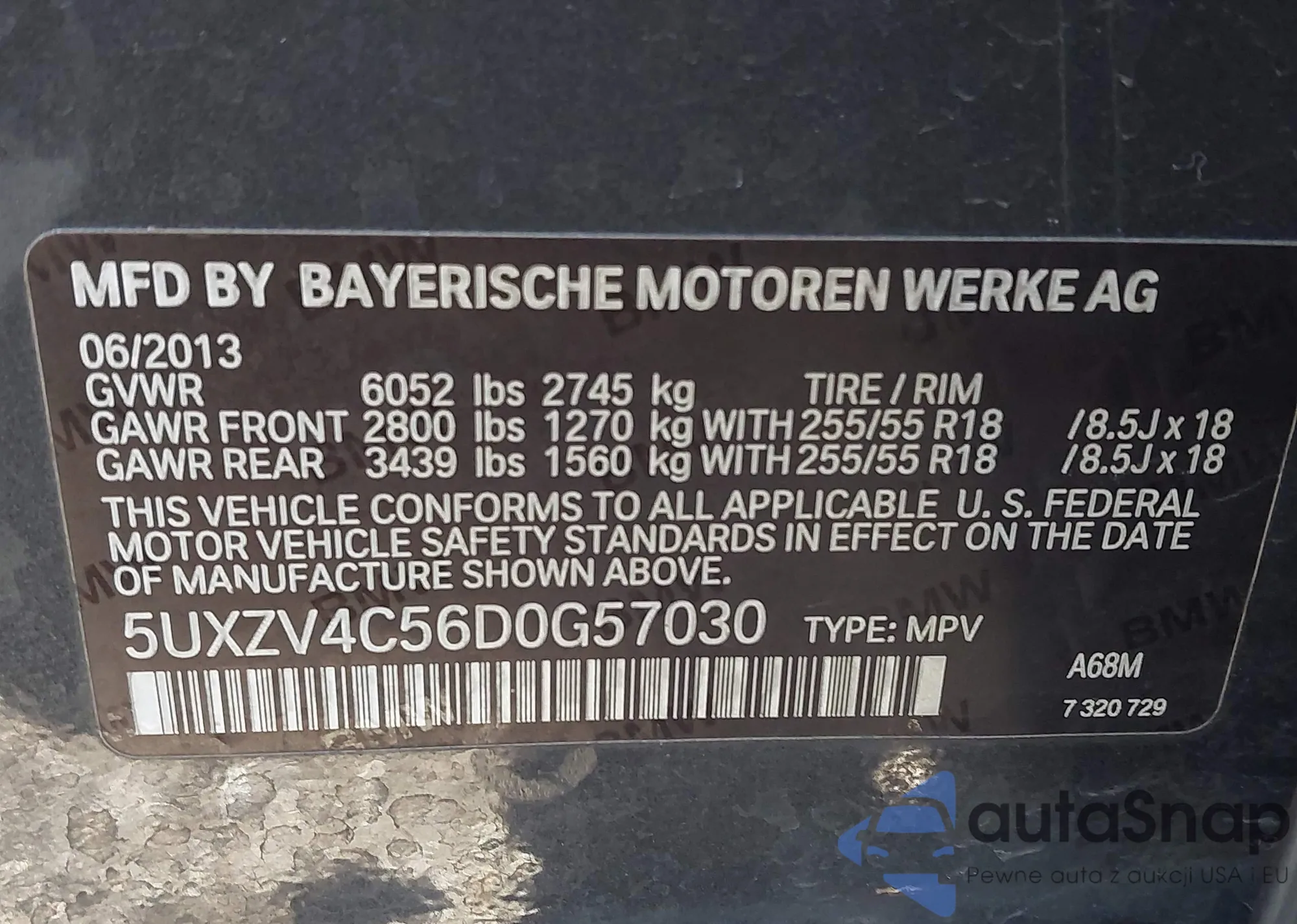 • VIN 5UXZV4C56D0G57030