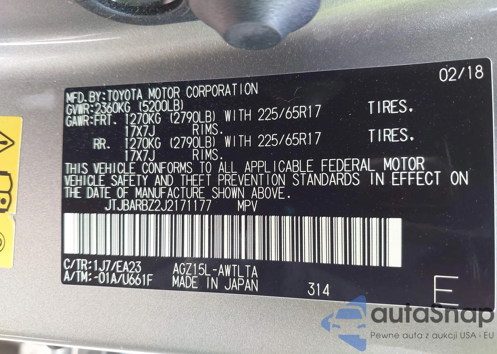 LOT: 42141305 VIN: JTJBARBZ2J2171177