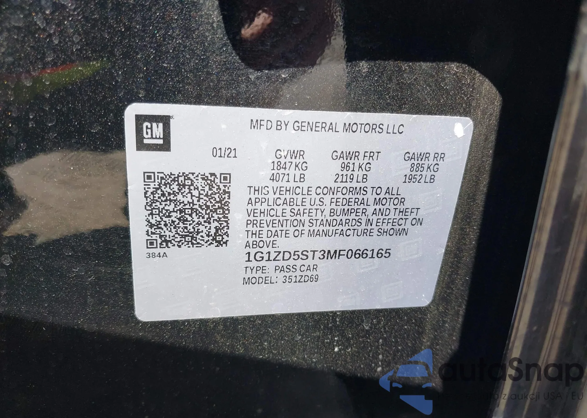 LOT: 42146426 VIN: 1G1ZD5ST3MF066165