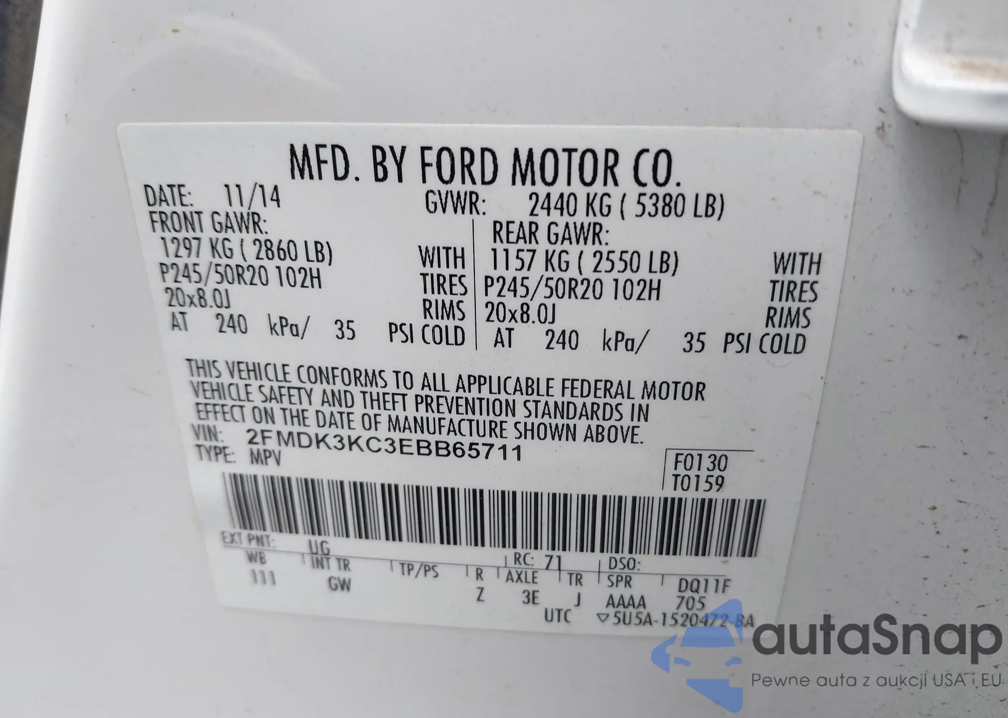 • VIN 2FMDK3KC3EBB65711