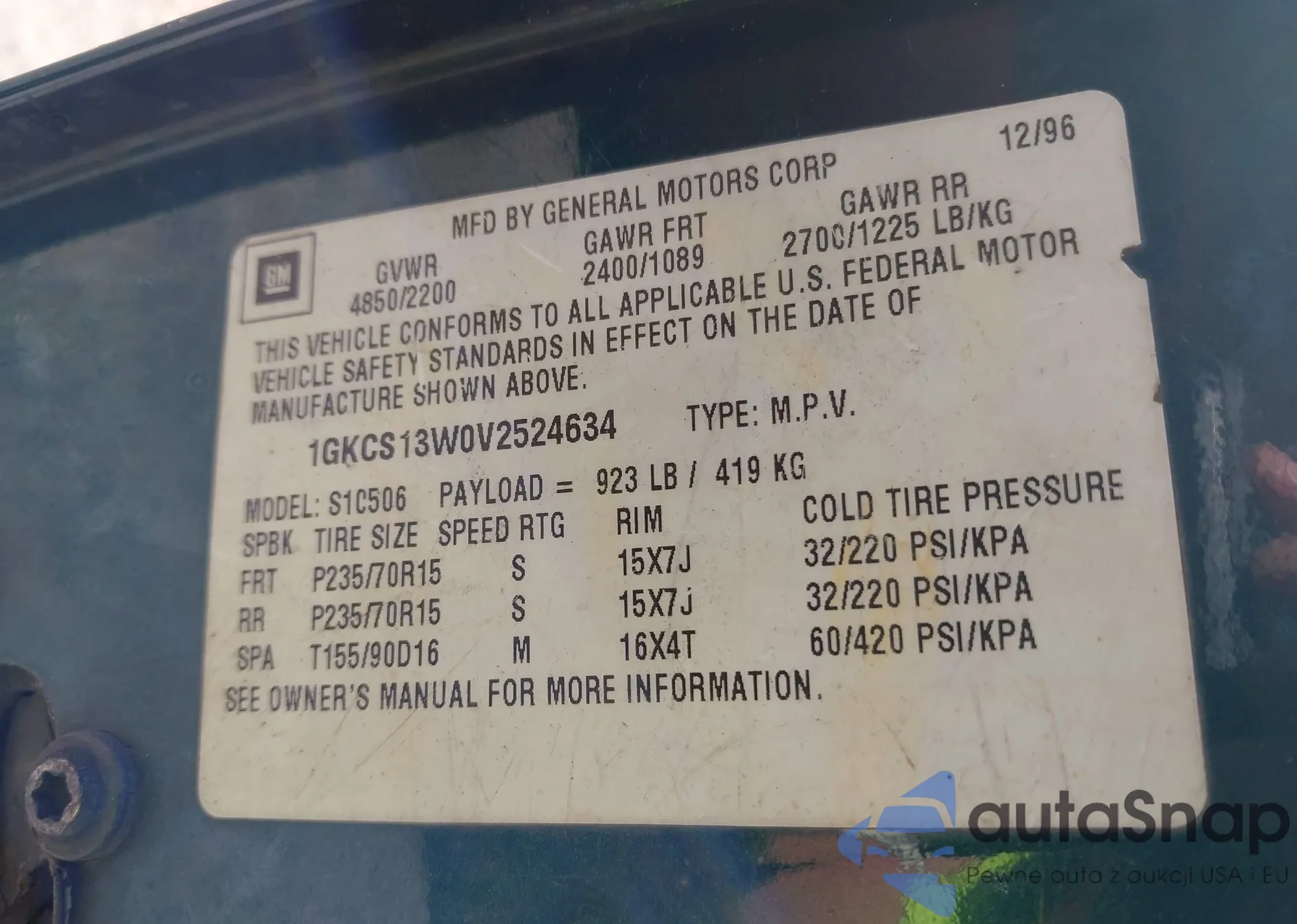 LOT: 42196586 VIN: 1GKCS13W0V2524634