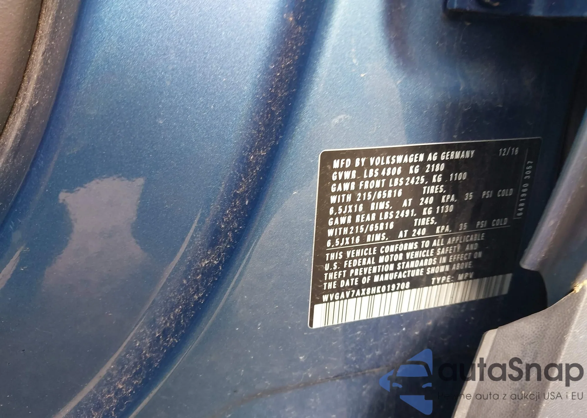 LOT: 42220306 VIN: WVWFA71F88V018635