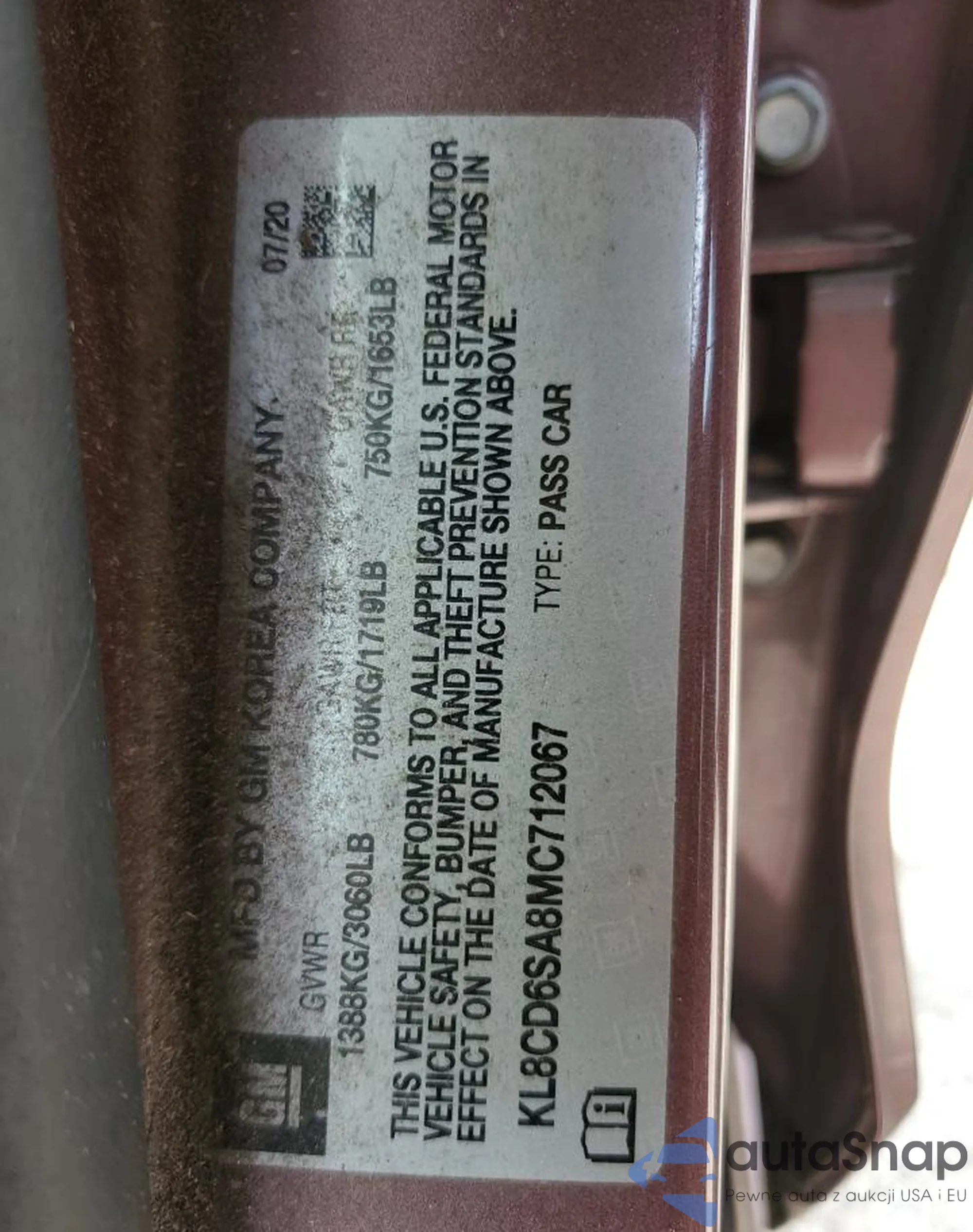 • VIN KL8CD6SA8MC712067