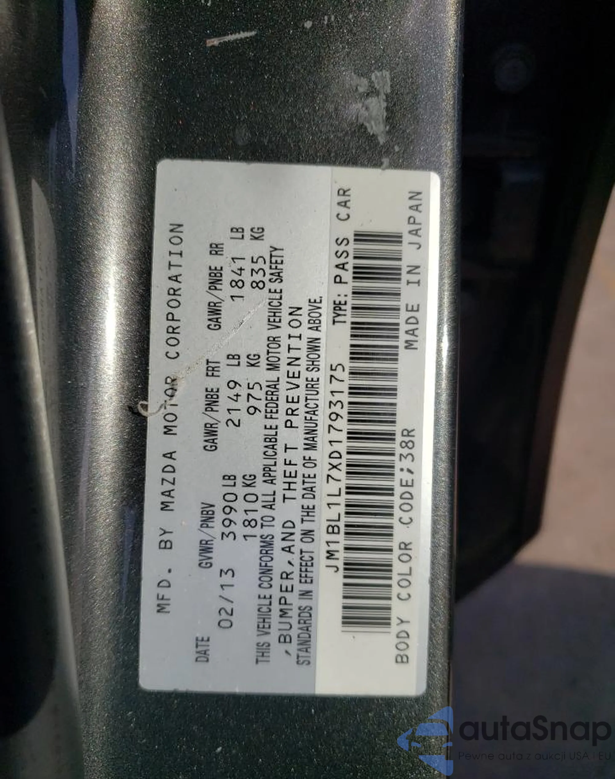 • VIN JM1BL1L7XD1793175