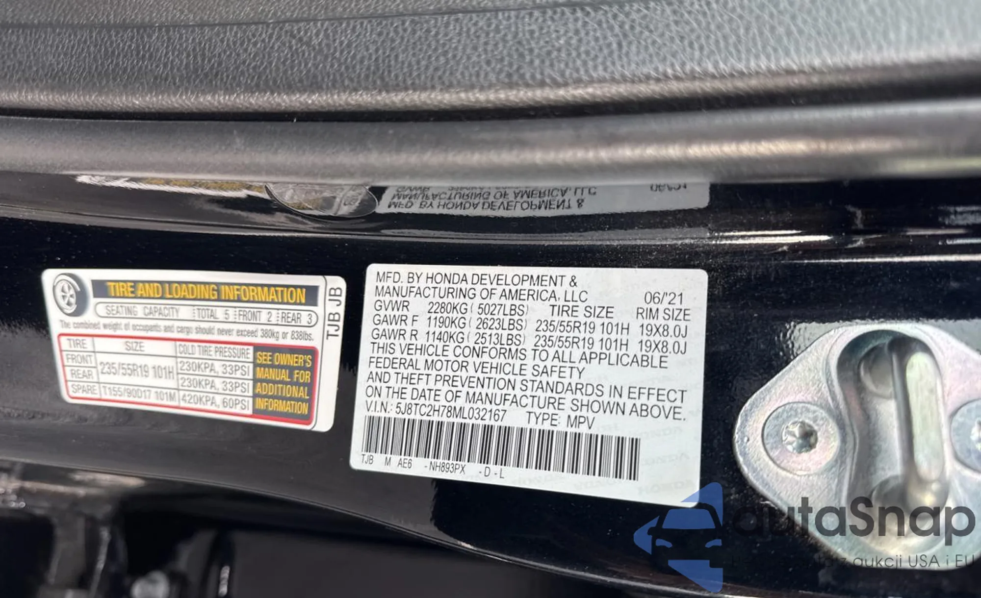 • VIN 5J8TC2H78ML032167