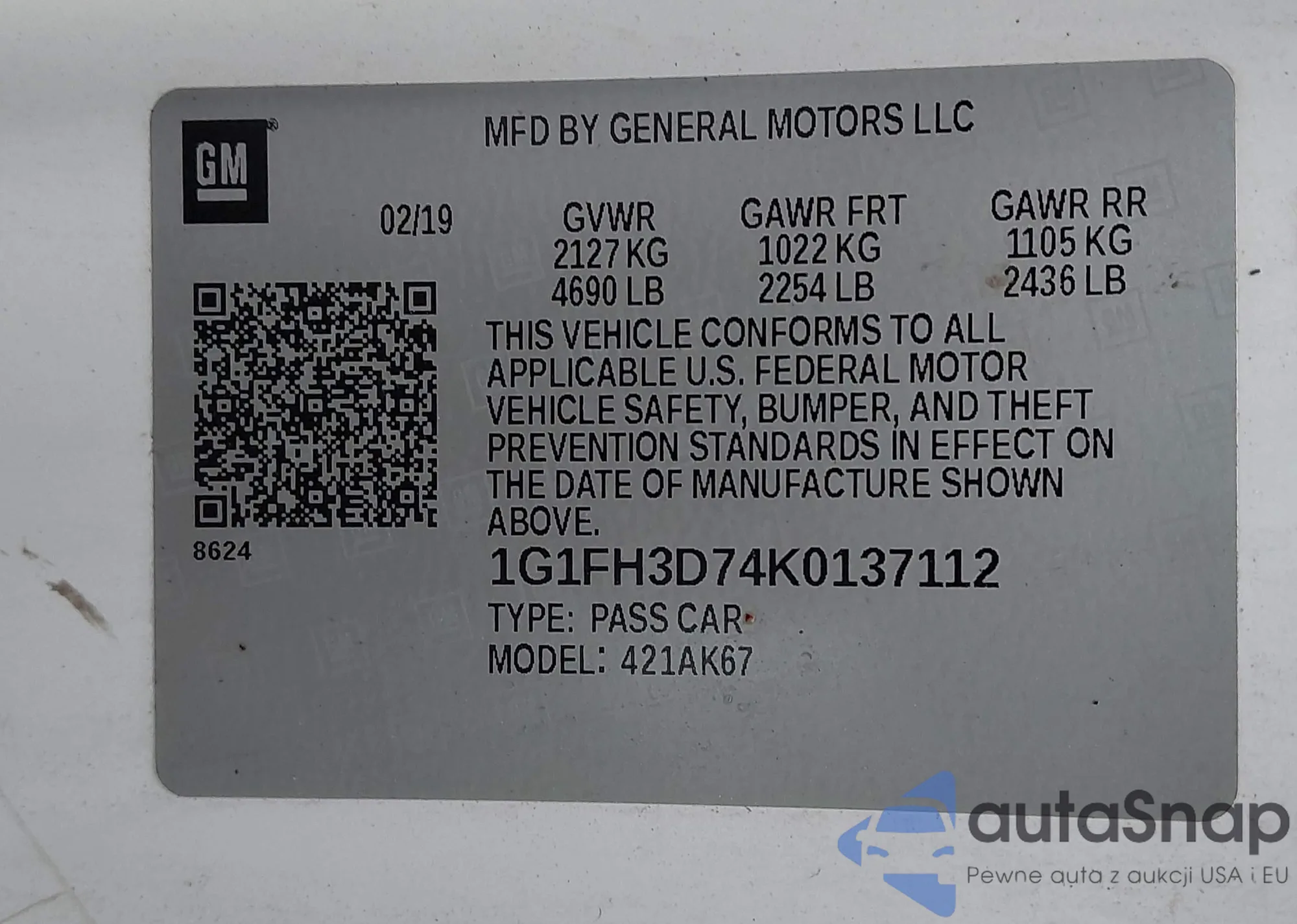 • VIN 1G1FH3D74K0137112