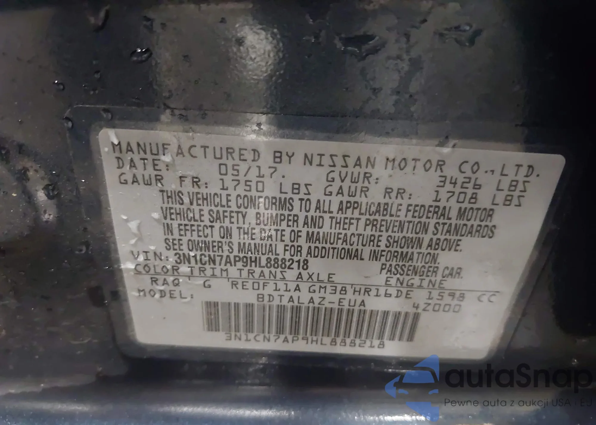 • VIN 3CZRU6H32LM717735