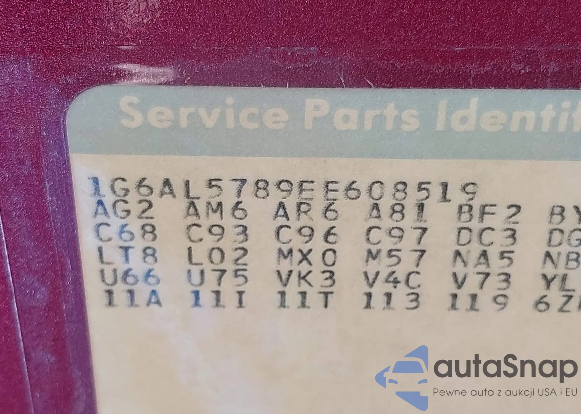 • VIN 1G6AL5789EE608519