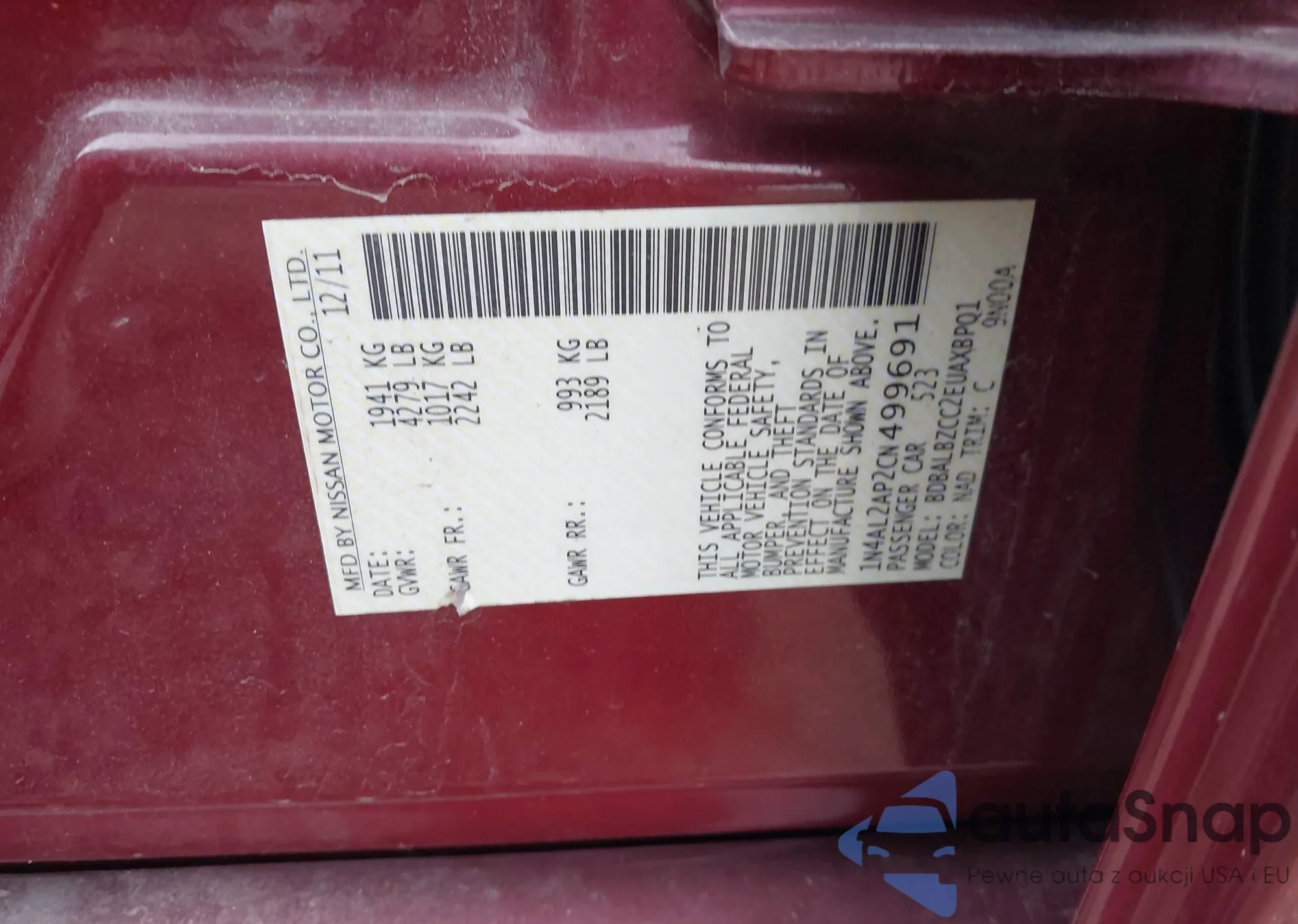 LOT: 42308681 VIN: 1N4AL2EP5BC172593