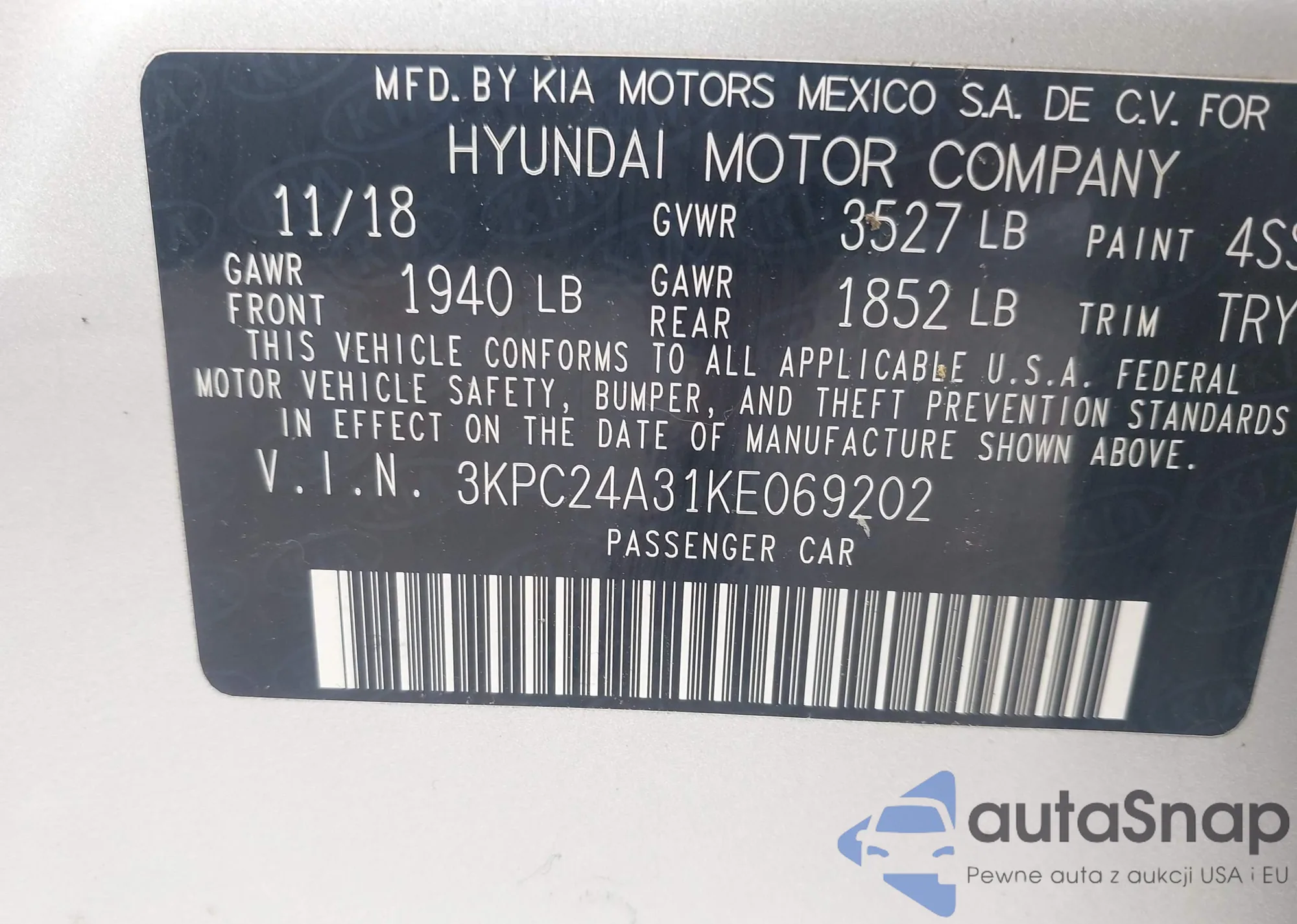 • VIN 3KPC24A31KE069202