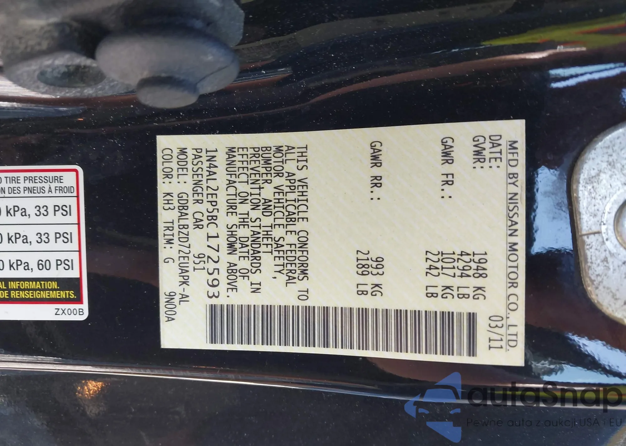 • VIN 1N4AL2EP5BC172593
