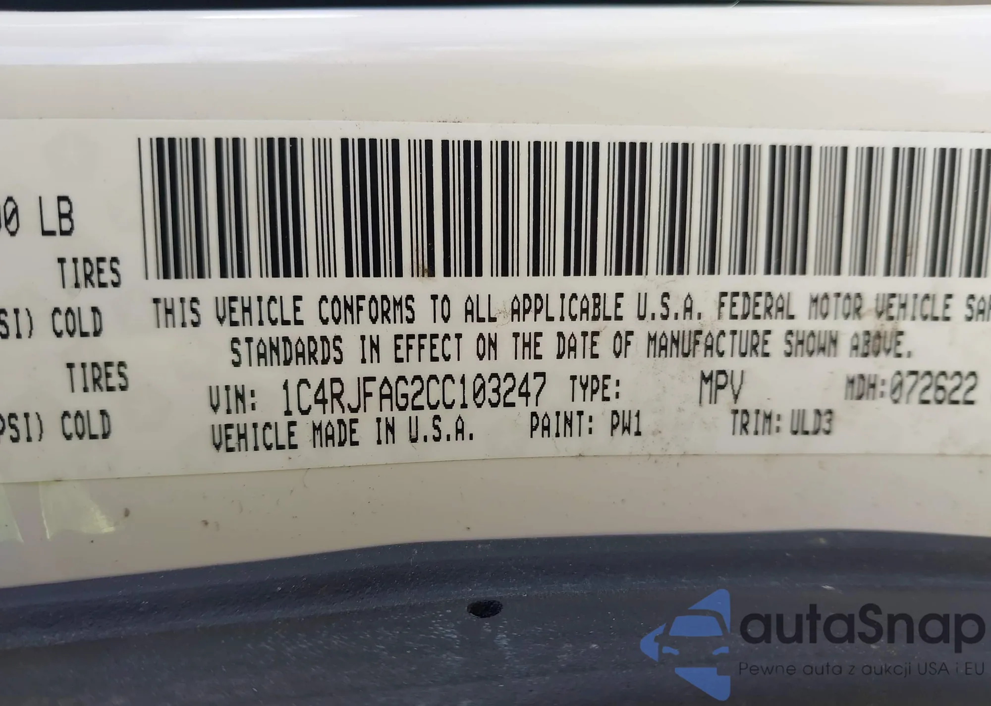 • VIN 1C4RJFAG2CC103247
