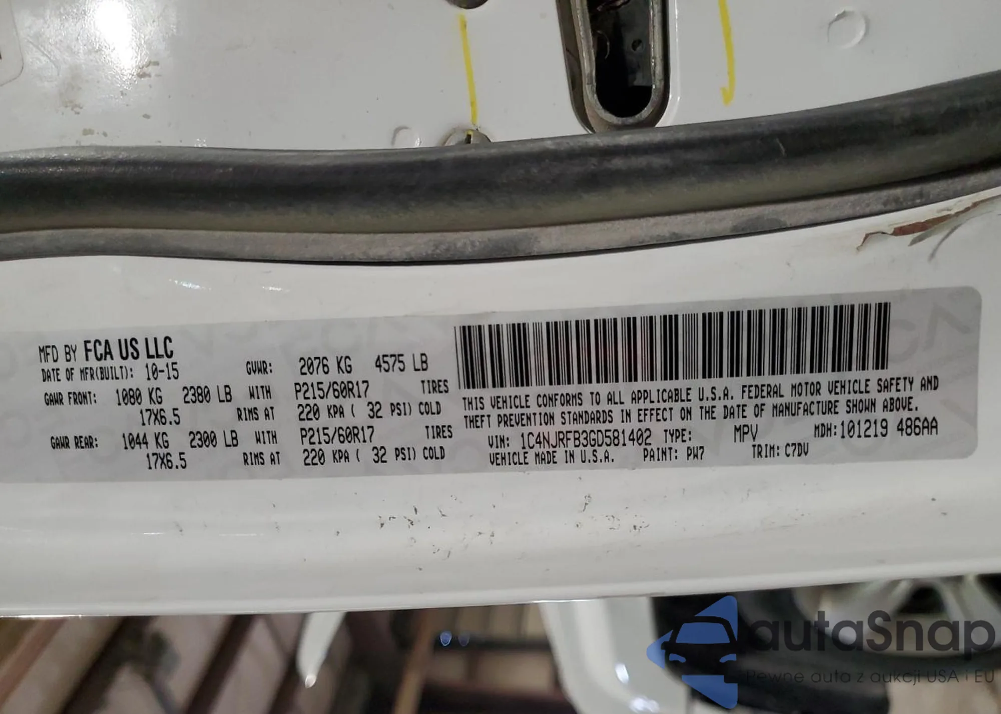 LOT: 52869605 VIN: 1C4NJRFB3GD581402
