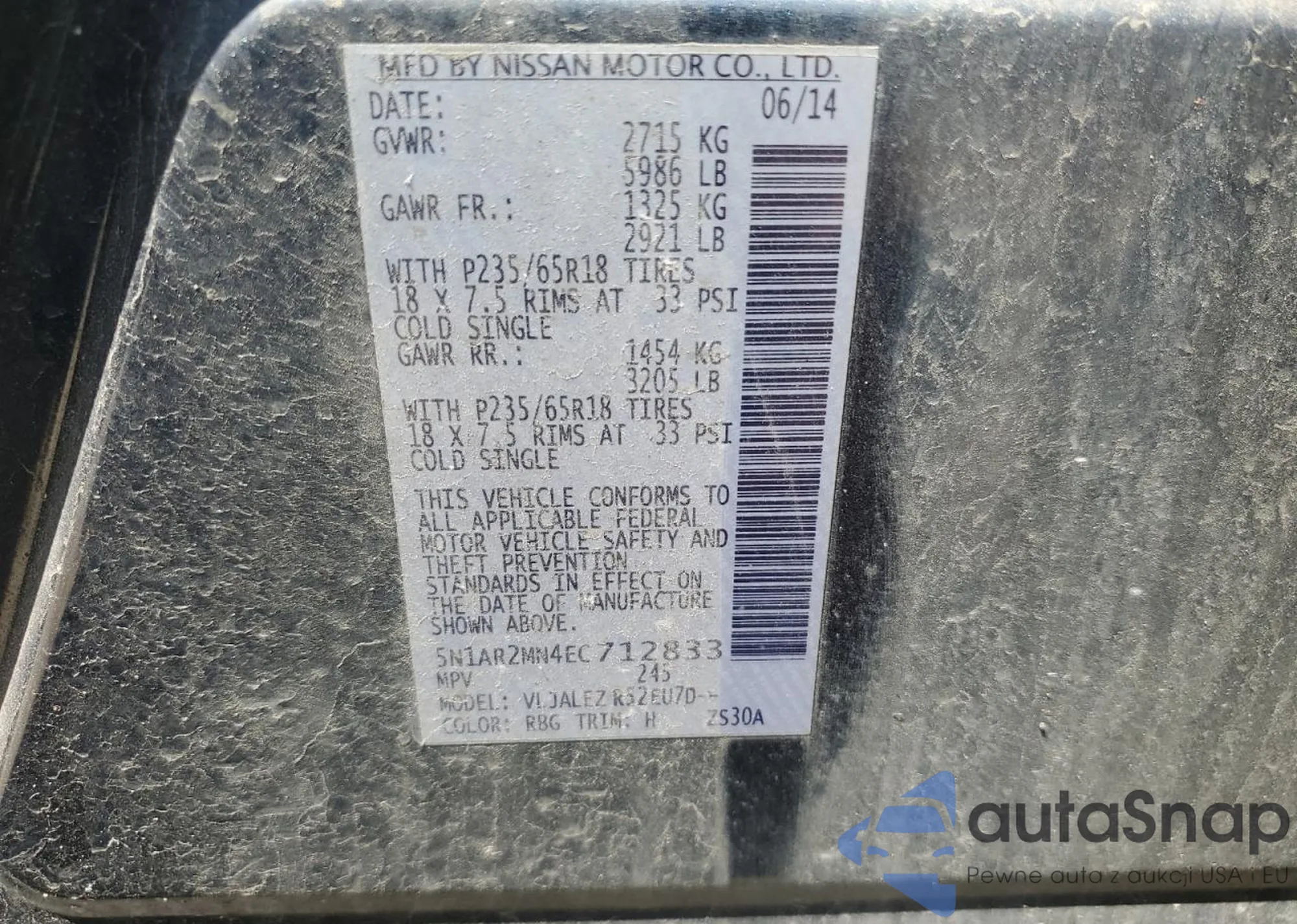 • VIN 5N1AR2MN4EC712833