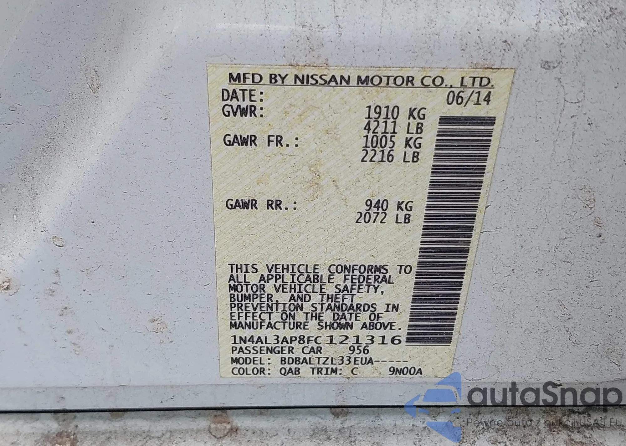 LOT: 42269756 VIN: 1N4AL3AP8FC121316
