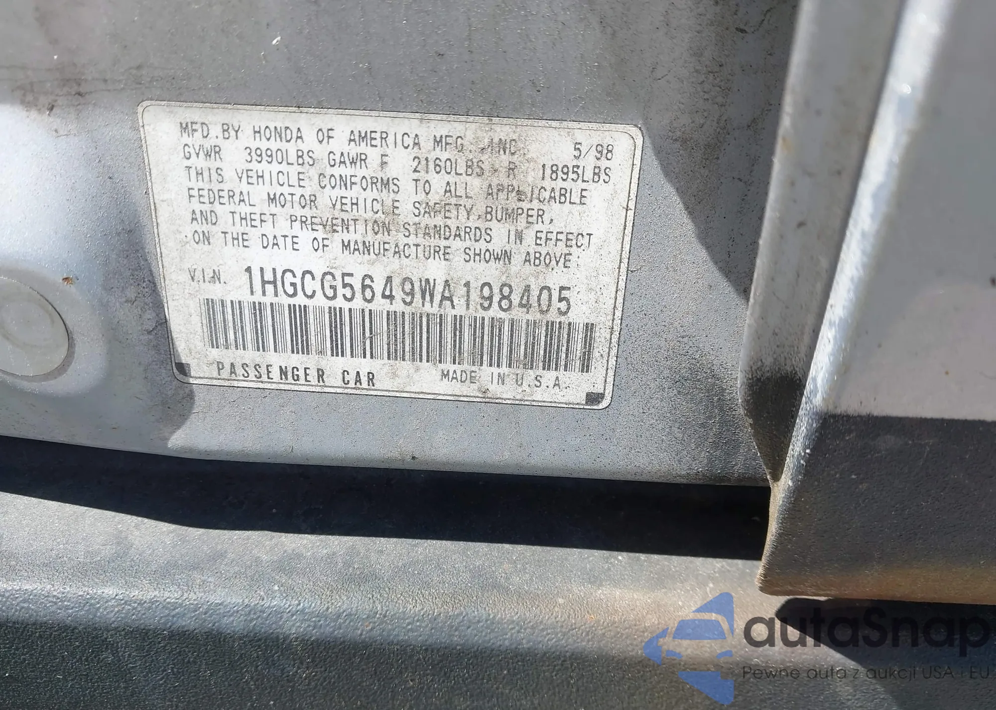 • VIN 1HGCG5649WA198405