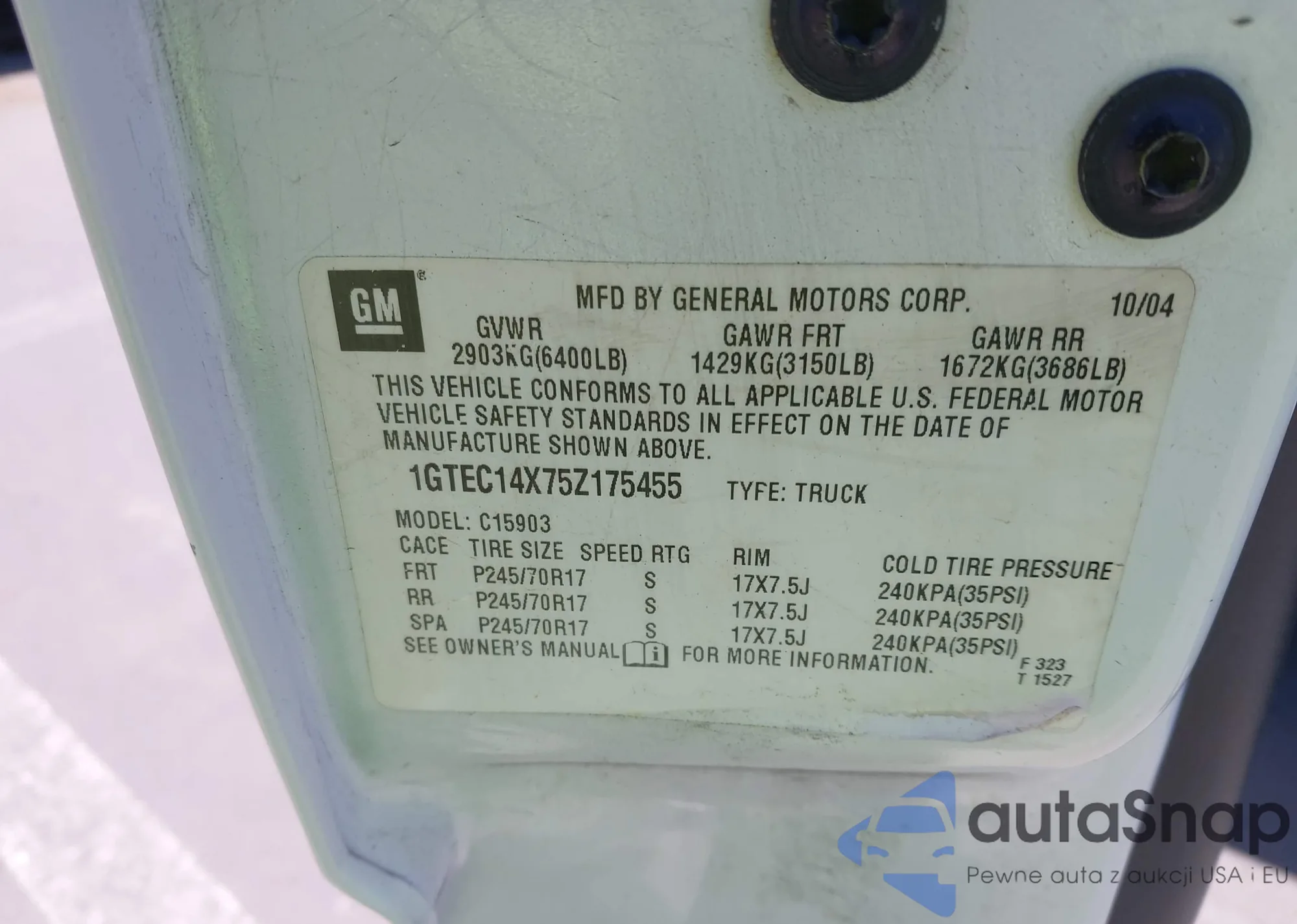 • VIN 1GTEC14X75Z175455