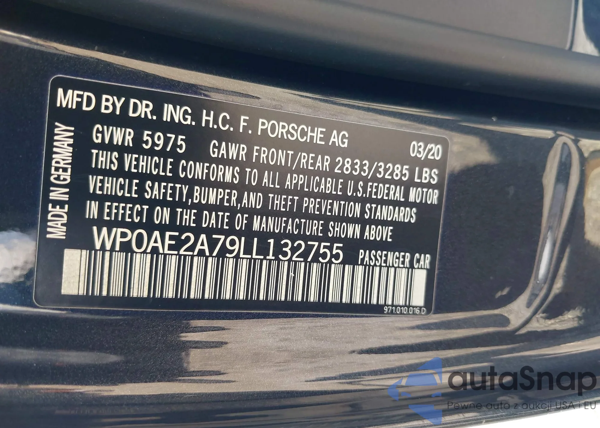LOT: 41745890 VIN: WP0AA2A83RK255017