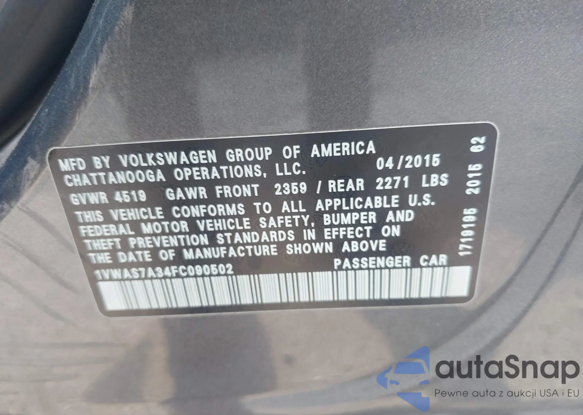 LOT: 42273616 VIN: 1VWAS7A34FC090502