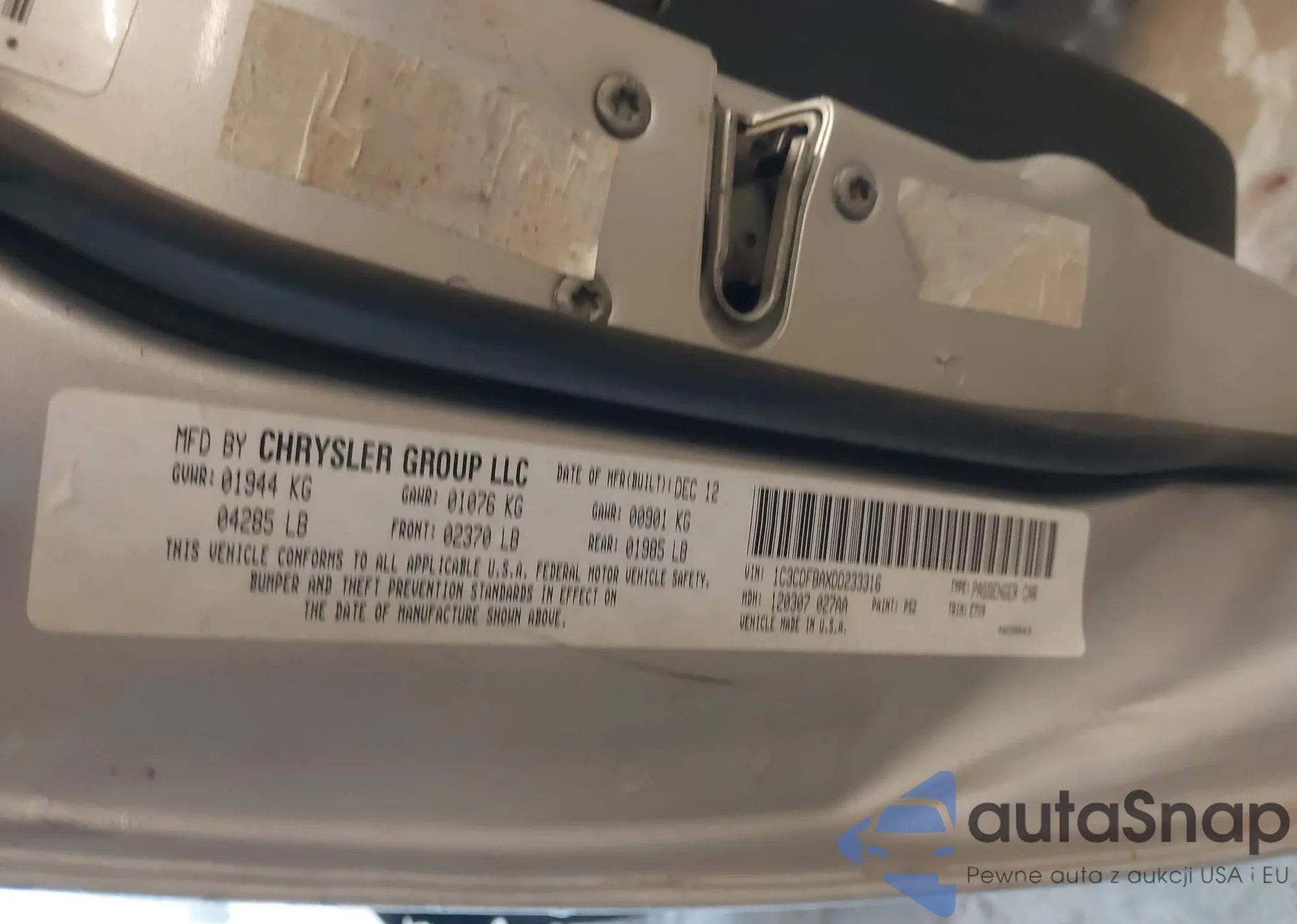 LOT: 38213542 VIN: 1C3CDFBAXDD233316