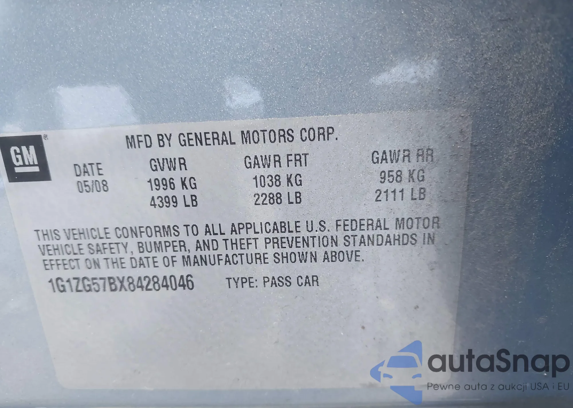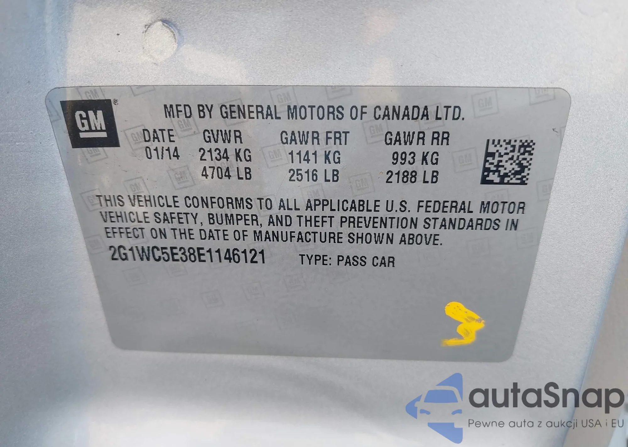 LOT: 42321702 VIN: 2G1WC5E38E1146121