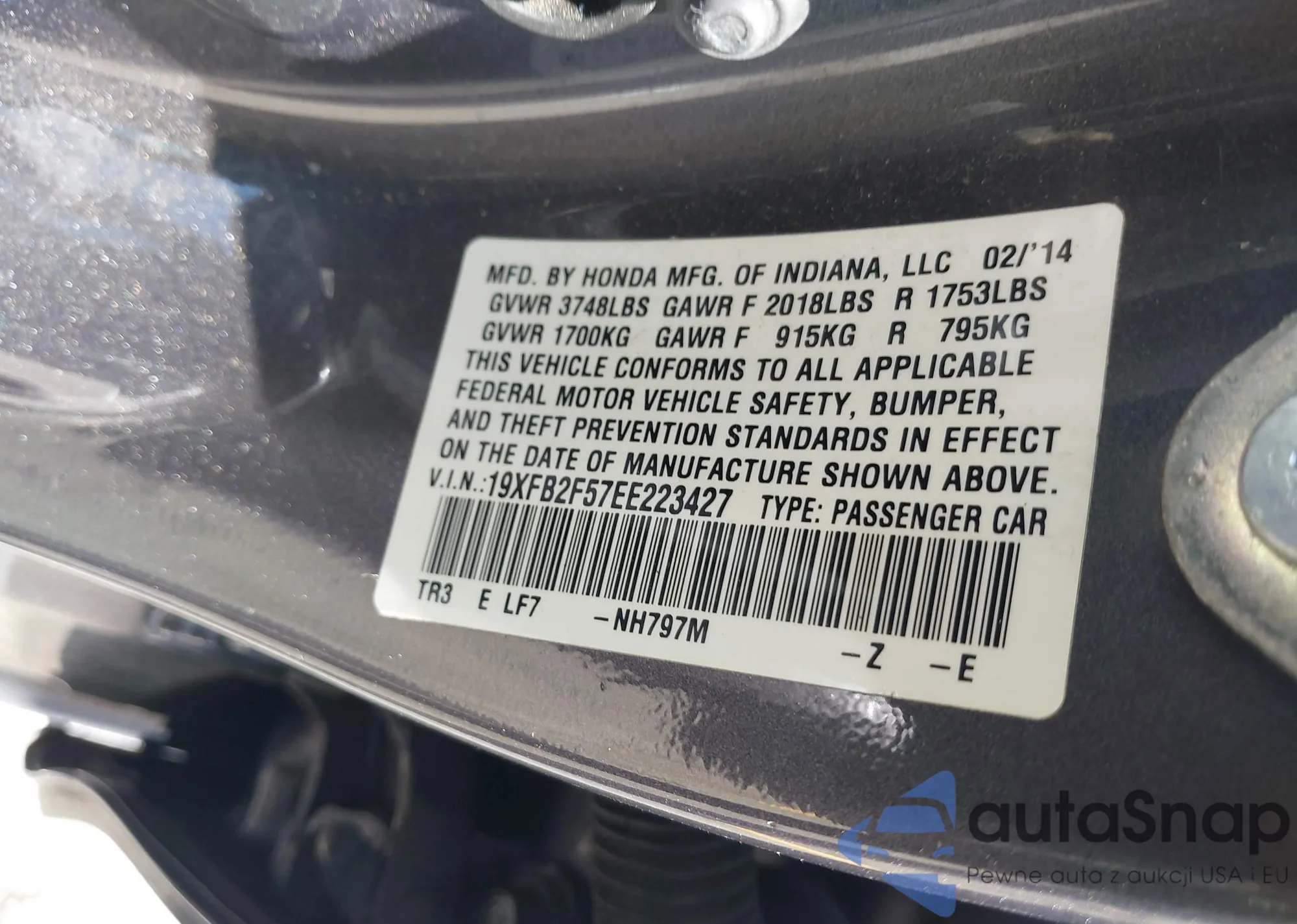 LOT: 42256772 VIN: 19XFB2F57EE223427