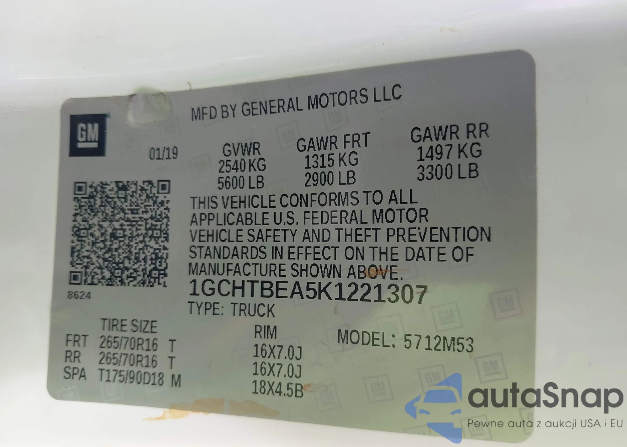 • VIN 1GCHTBEA5K1221307