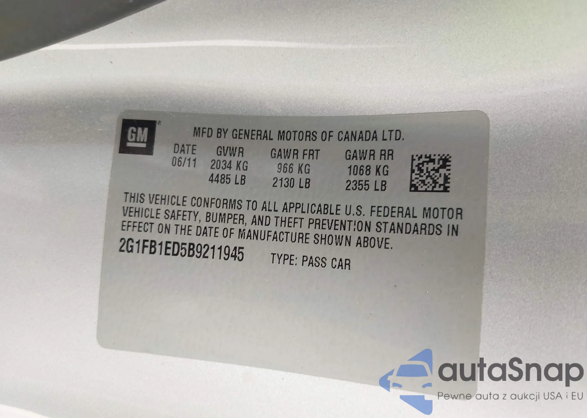 • VIN 2G1FB1ED5B9211945