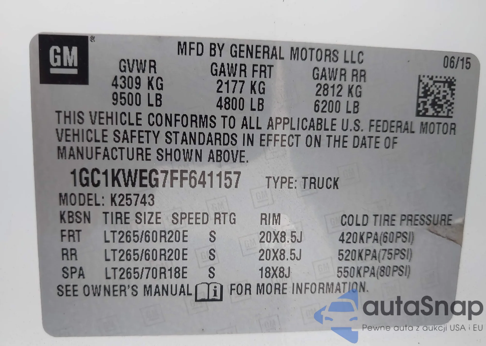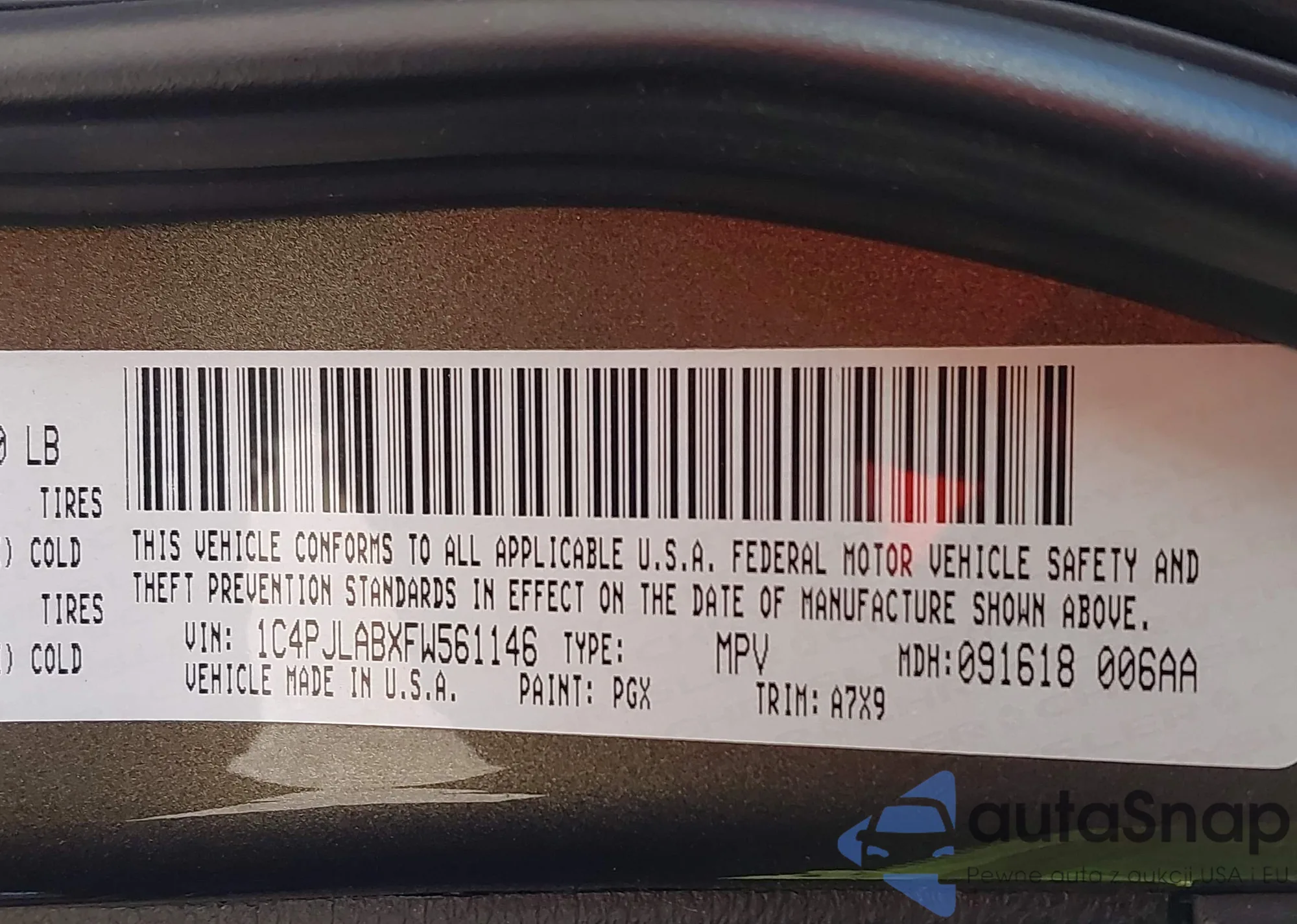 LOT: 42291577 VIN: 1C4PJLABXFW561146