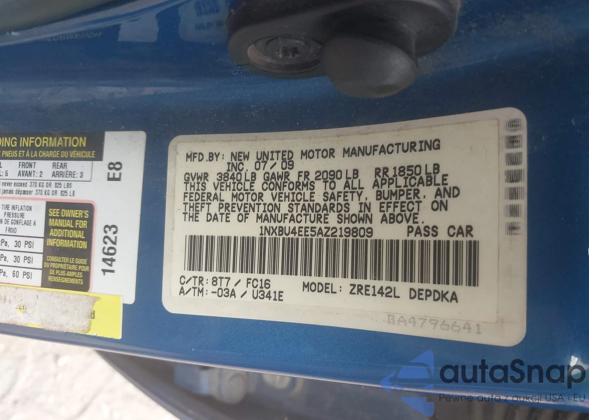LOT: 42291675 VIN: 1NXBU4EE5AZ219809