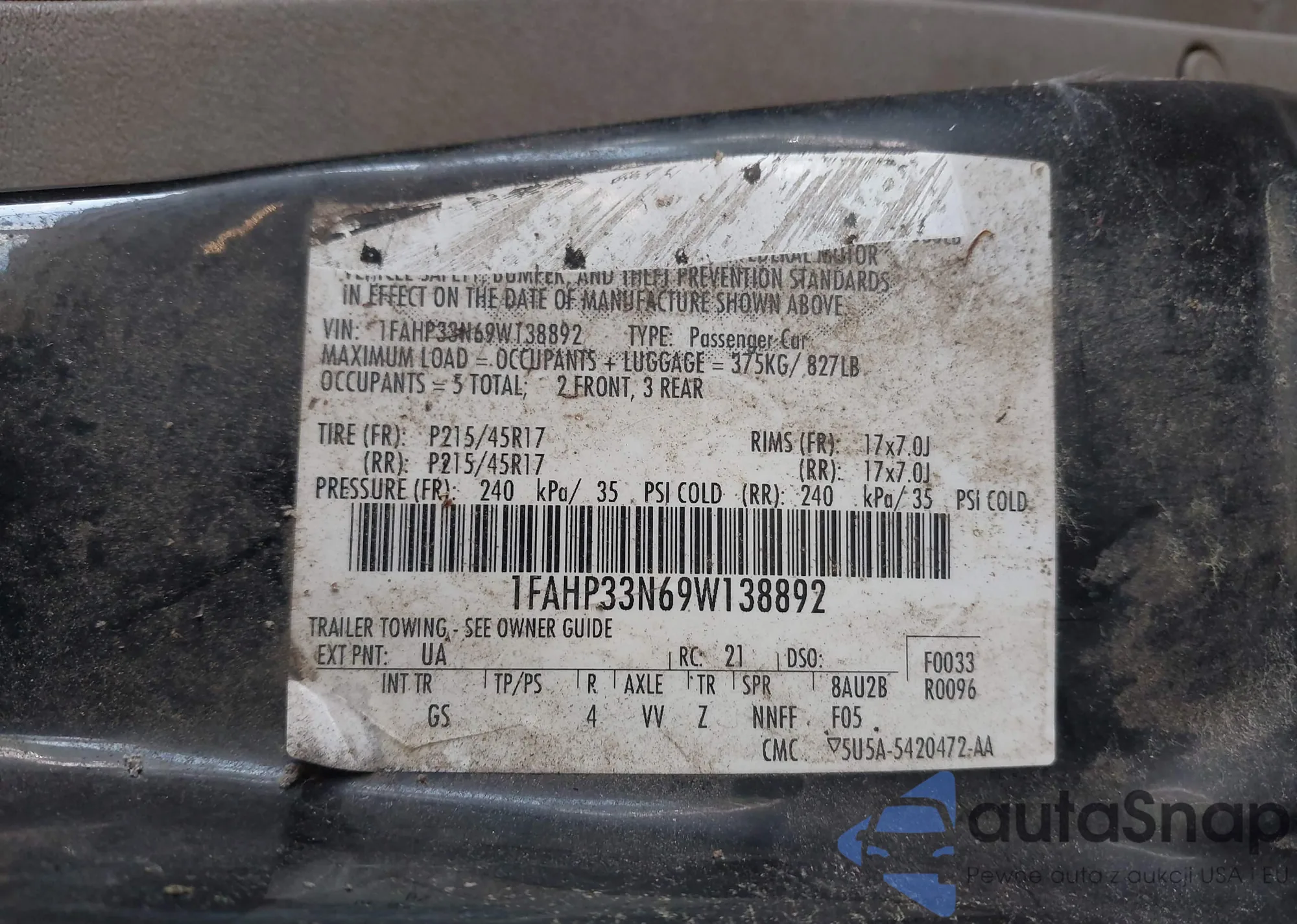 LOT: 42290750 VIN: 2G1FB1ED5B9211945