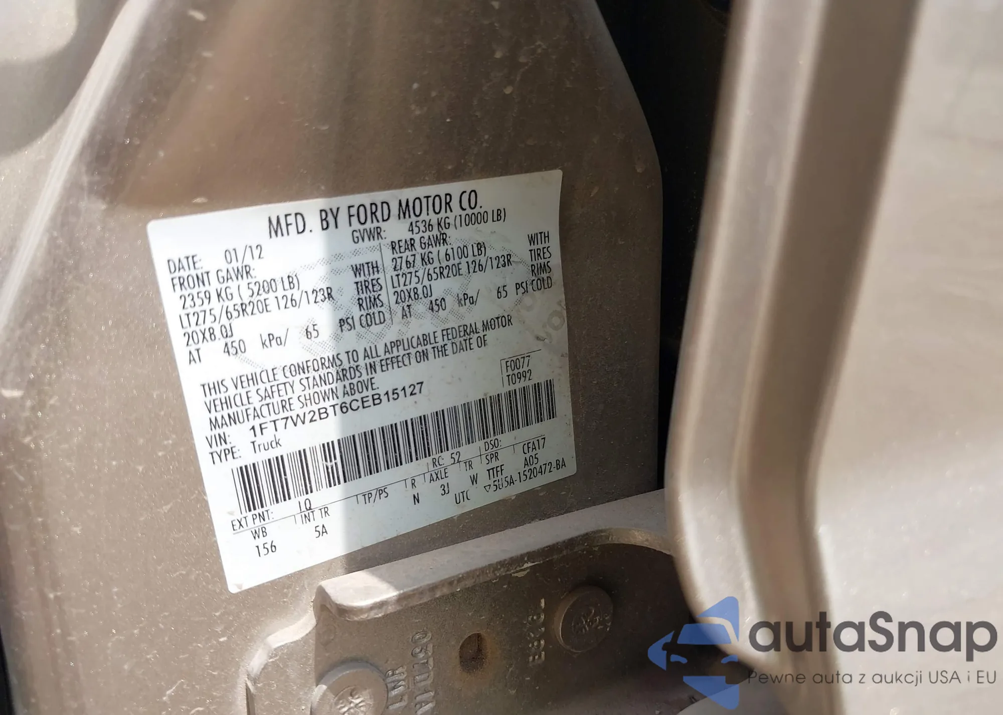 LOT: 42065725 VIN: 1FT7W2BT6CEB15127