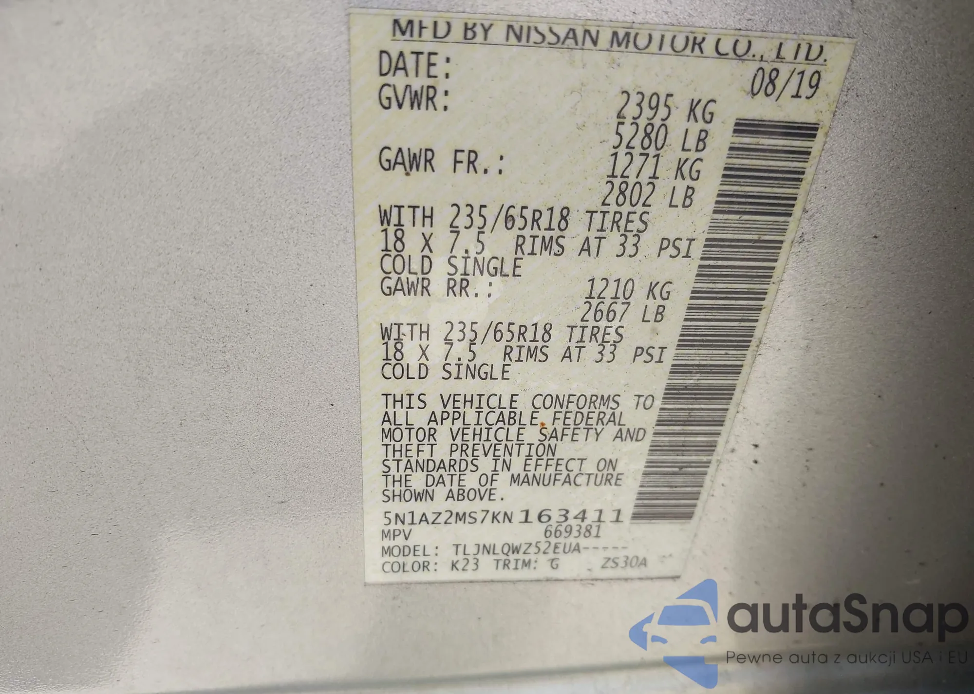LOT: 42334646 VIN: 1N4AL2AP5AN534995