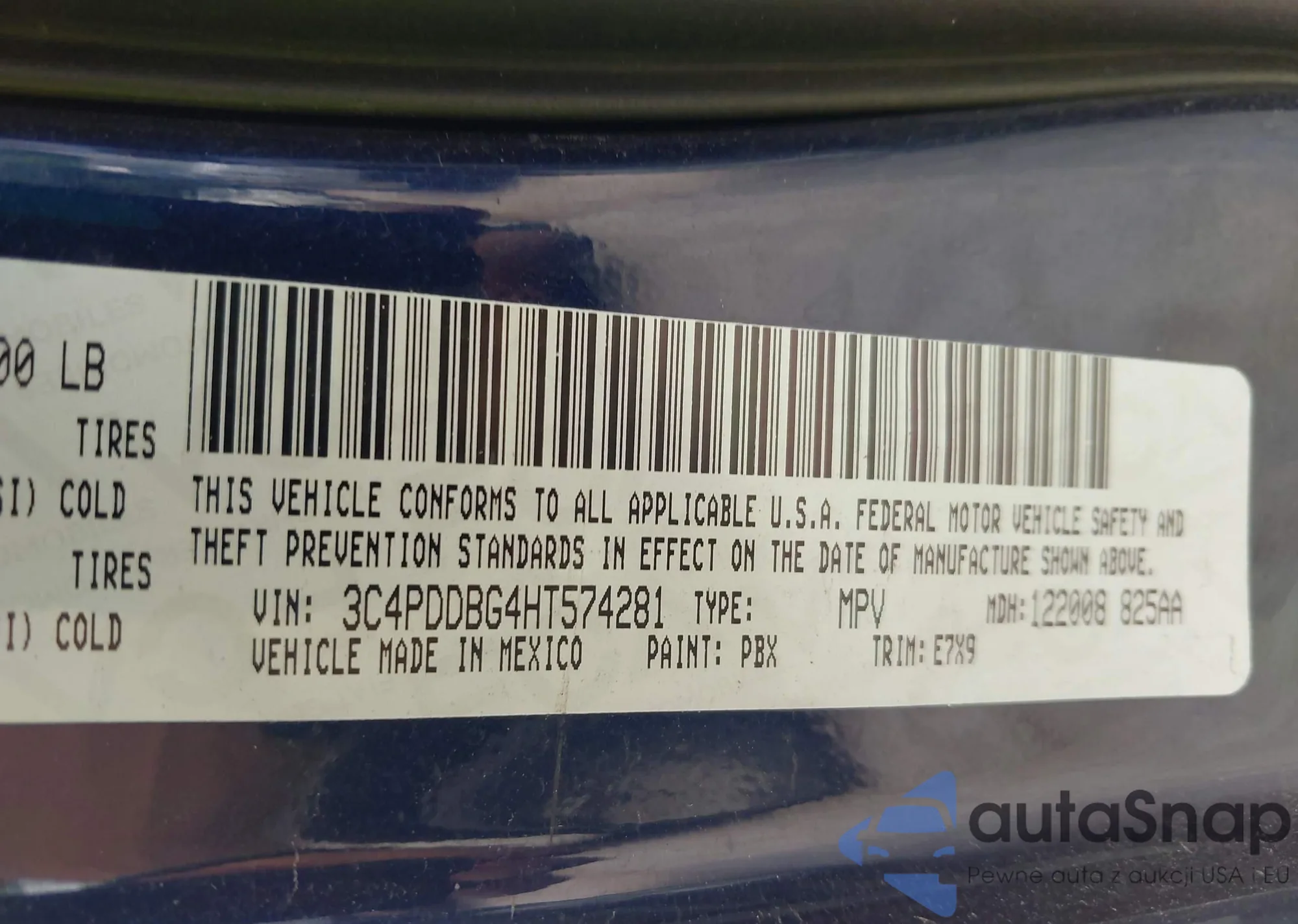 • VIN 3C4PDDBG4HT574281