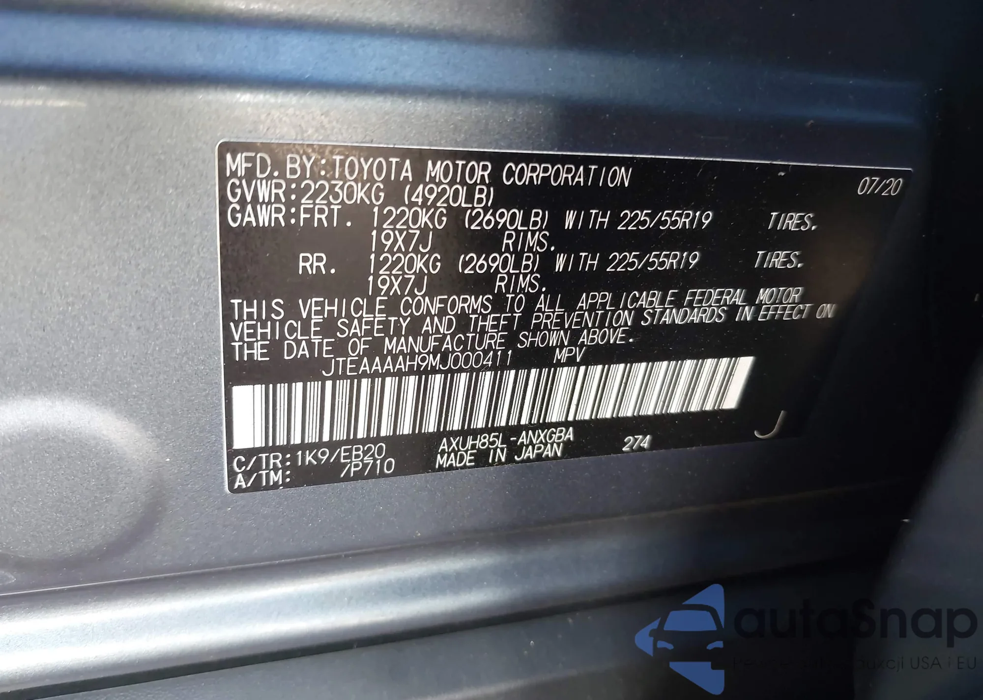 • VIN SAJAH4EV4JCP17110