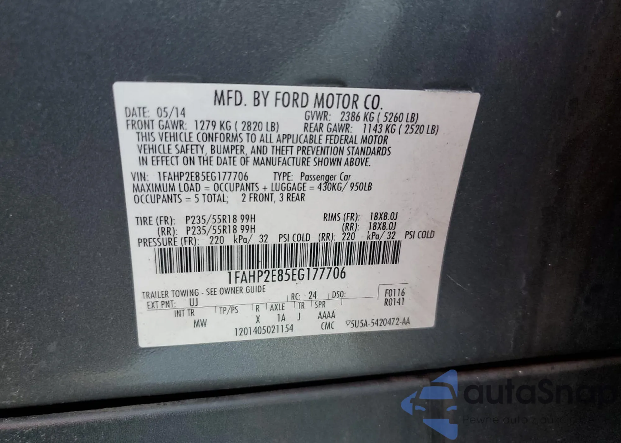 • VIN 1FAHP2E85EG177706