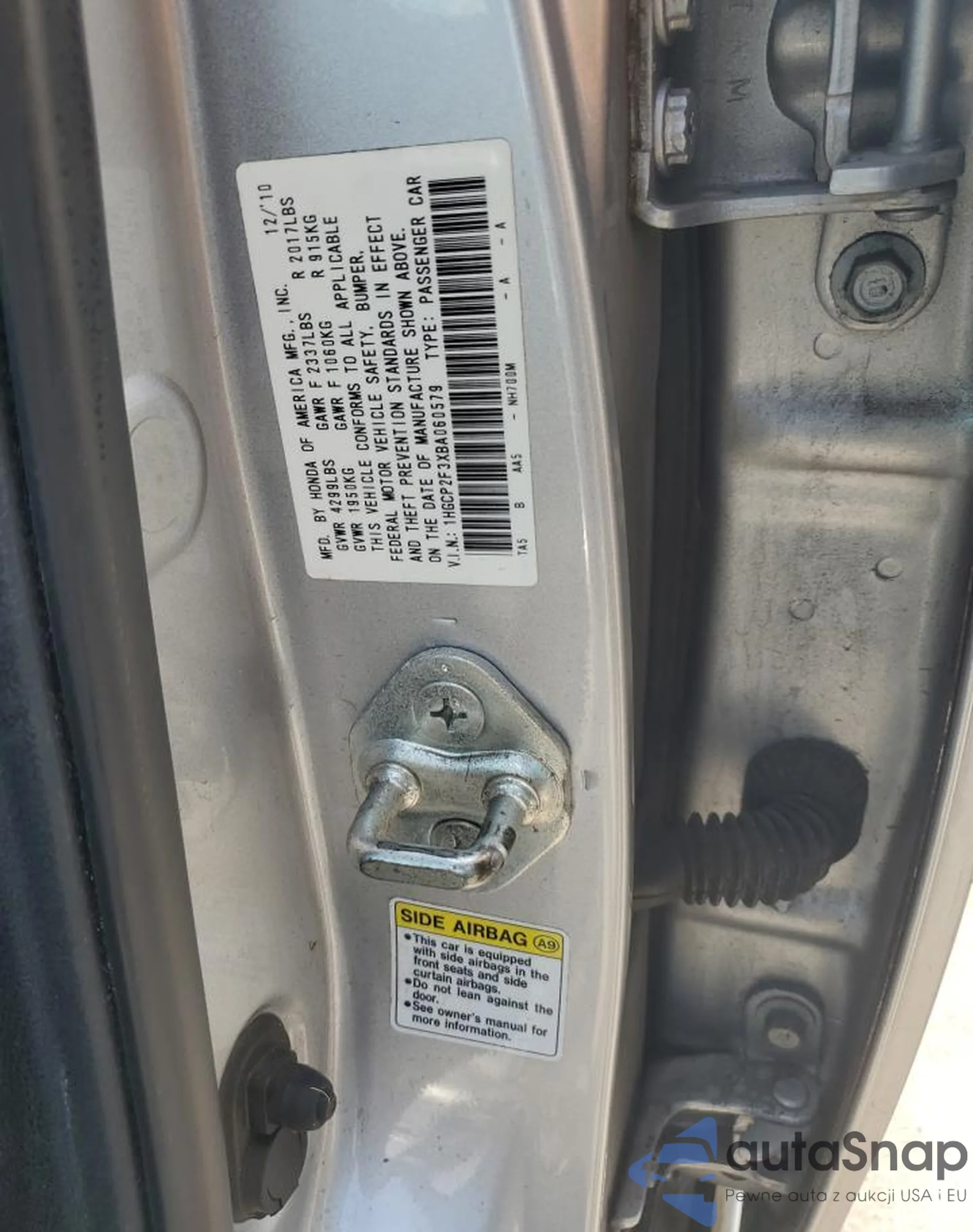• VIN 5FNYF6H36KB098023