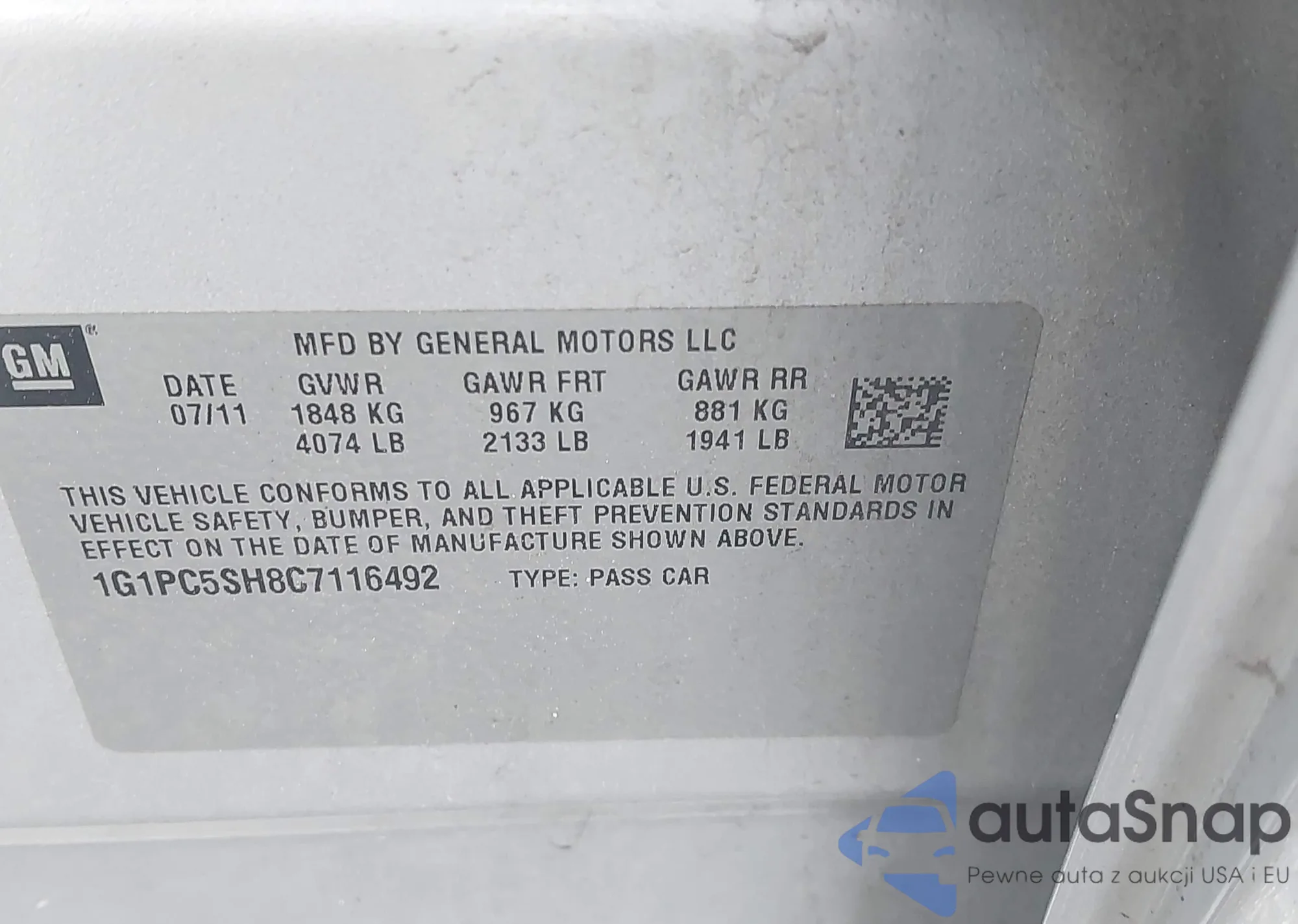 • VIN 1G1PC5SH8C7116492