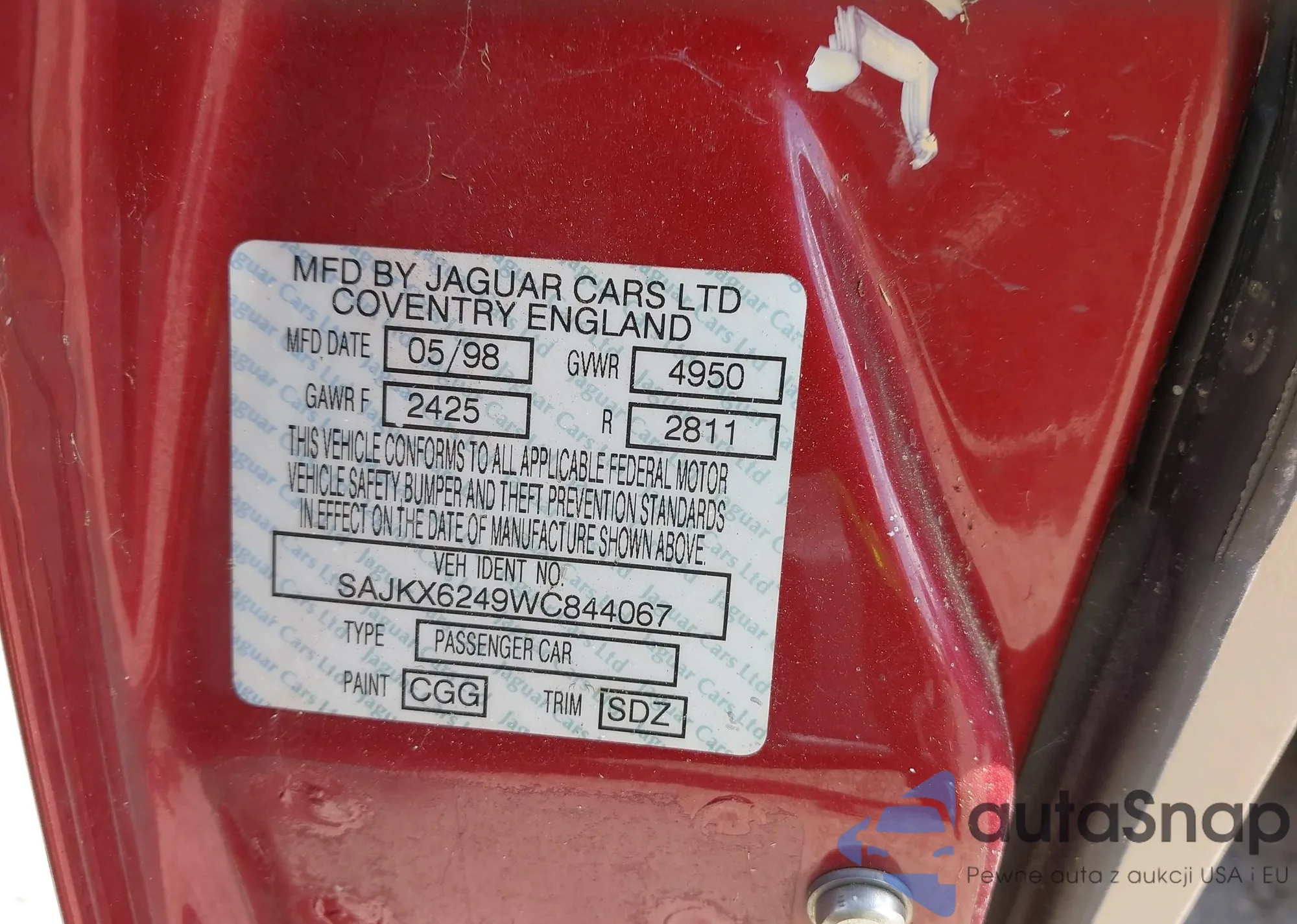 LOT: 42145235 VIN: SAJKX6249WC844067