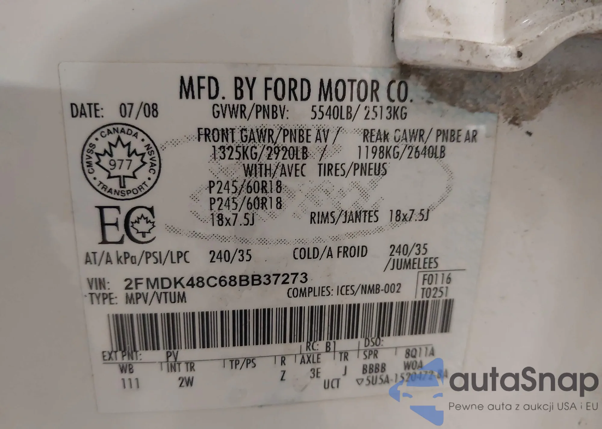 • VIN 2FMDK48C68BB37273