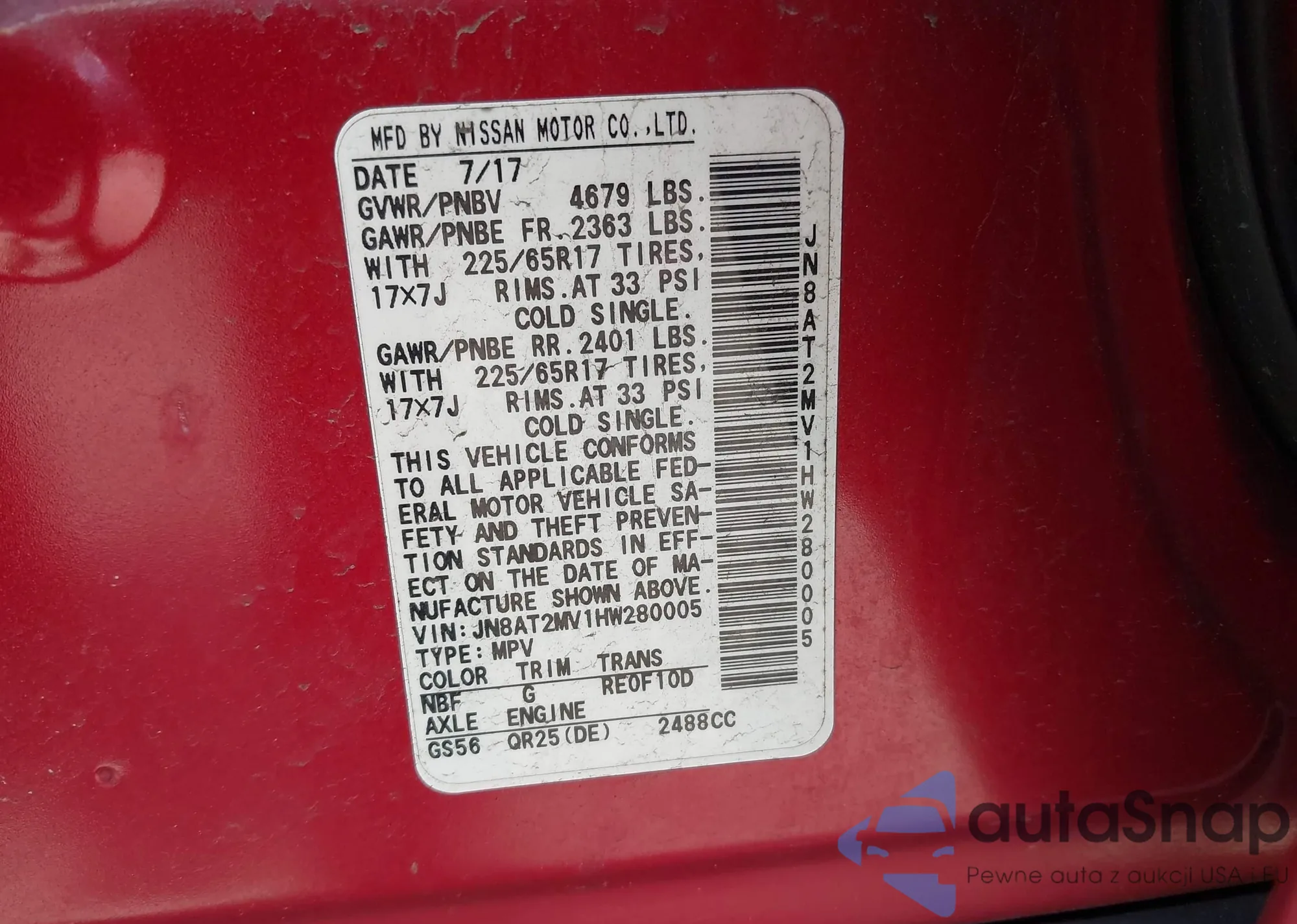LOT: 42224939 VIN: JN8AT2MV1HW280005