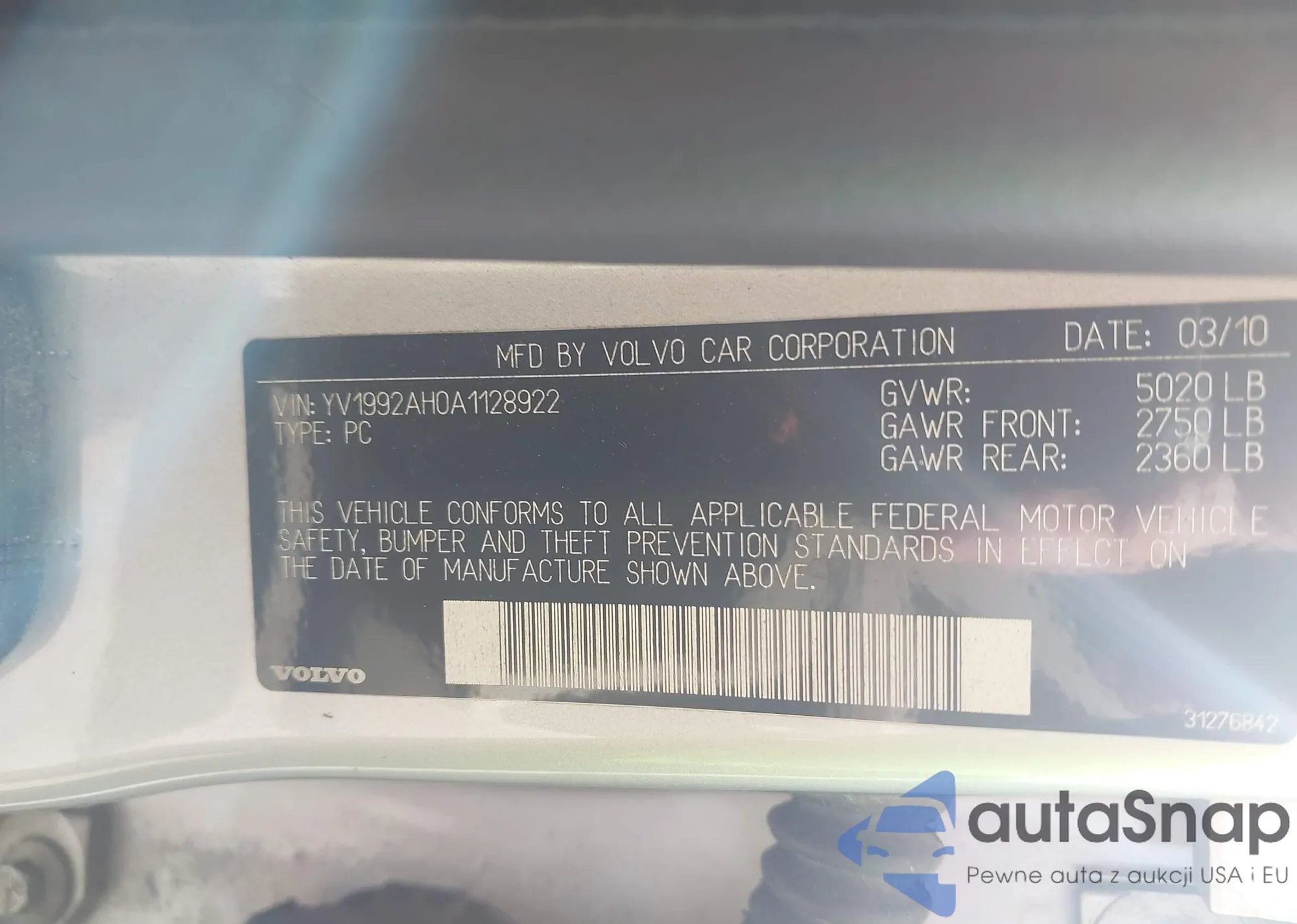 LOT: 42324589 VIN: YV1992AH0A1128922