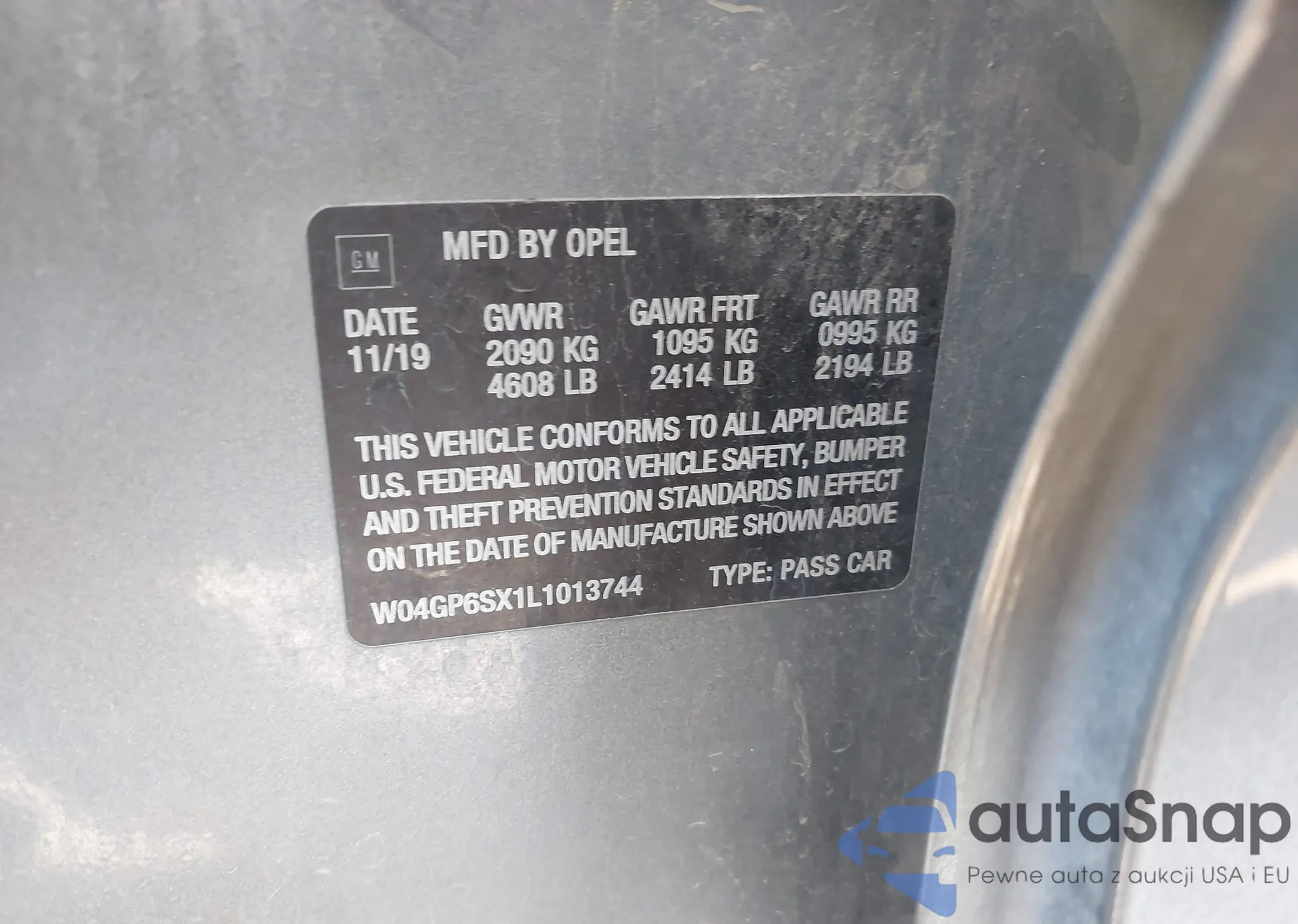 • VIN W04GP6SX1L1013744