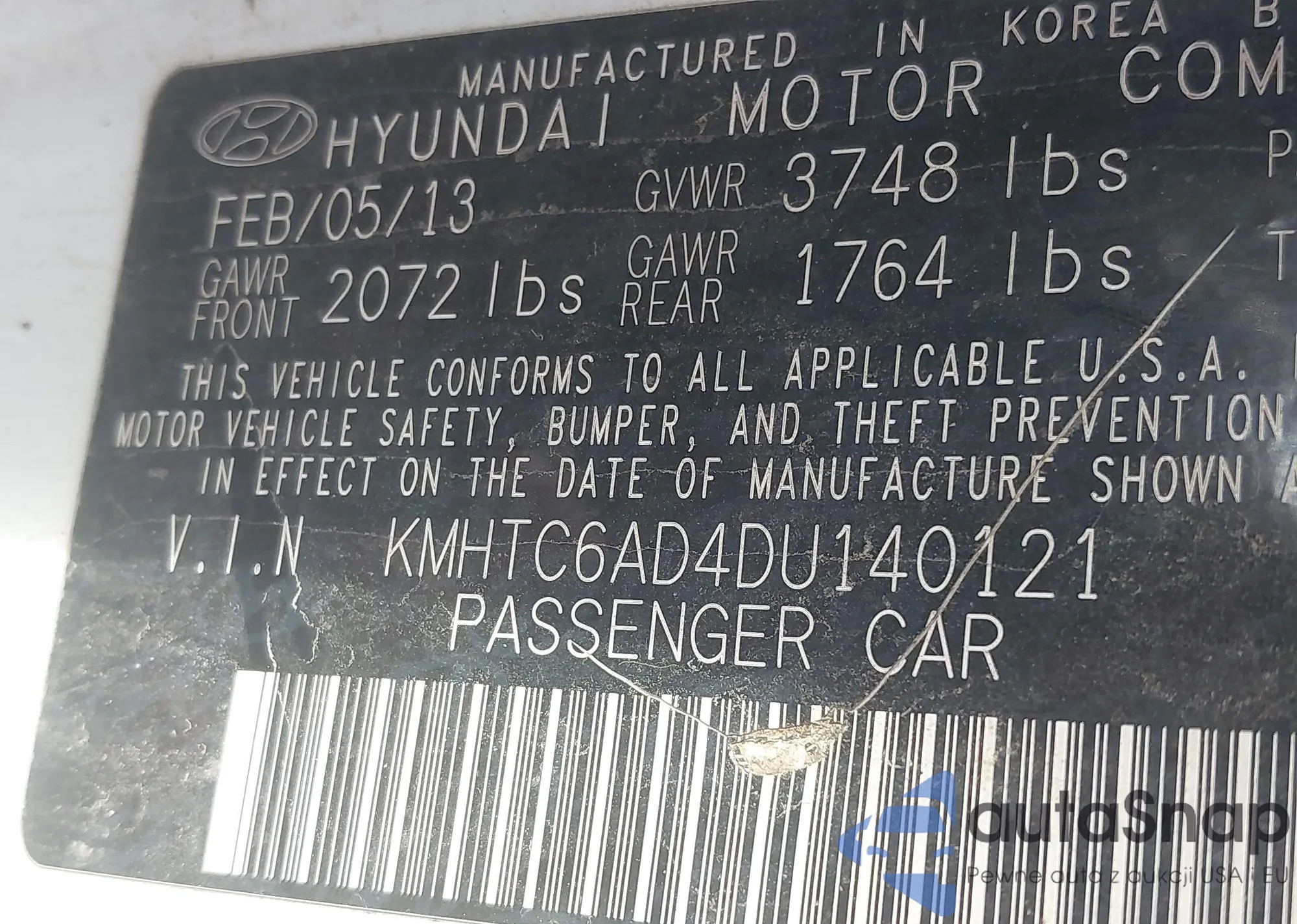 • VIN KMHTC6AD4DU140121